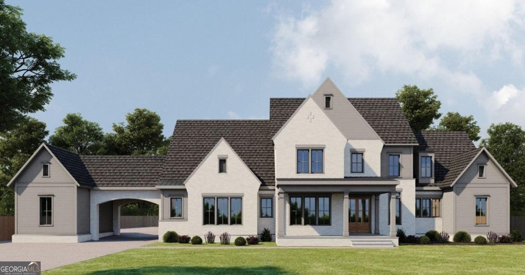 Own your own private luxury estate in one of the premier locations on the very southern tip of Milton. This stately transitional home features a bright and open floorplan with chef's kitchen including thermador appliances, custom cabinetry, and quartz countertops. The kitchen overlooks a generous living space leading to a covered patio with outdoor fireplace and a beautiful backyard oasis. The home features 2 bedrooms including owner's suite on the main level, office/study, white oak hardwoods throughout, Pella windows, and a full basement with option to finish. This home also has rare details including a 4 car garage, a porte cochere, and a privacy gate at the street combined with a home that sits nicely towards the back of the property giving the ultimate sense of privacy and tranquility. Don't miss the chance to own one of 3 opportunities by top builder, Waterford Homes. This is another luxury listing brought to you by Wieloch | Goldstein.
