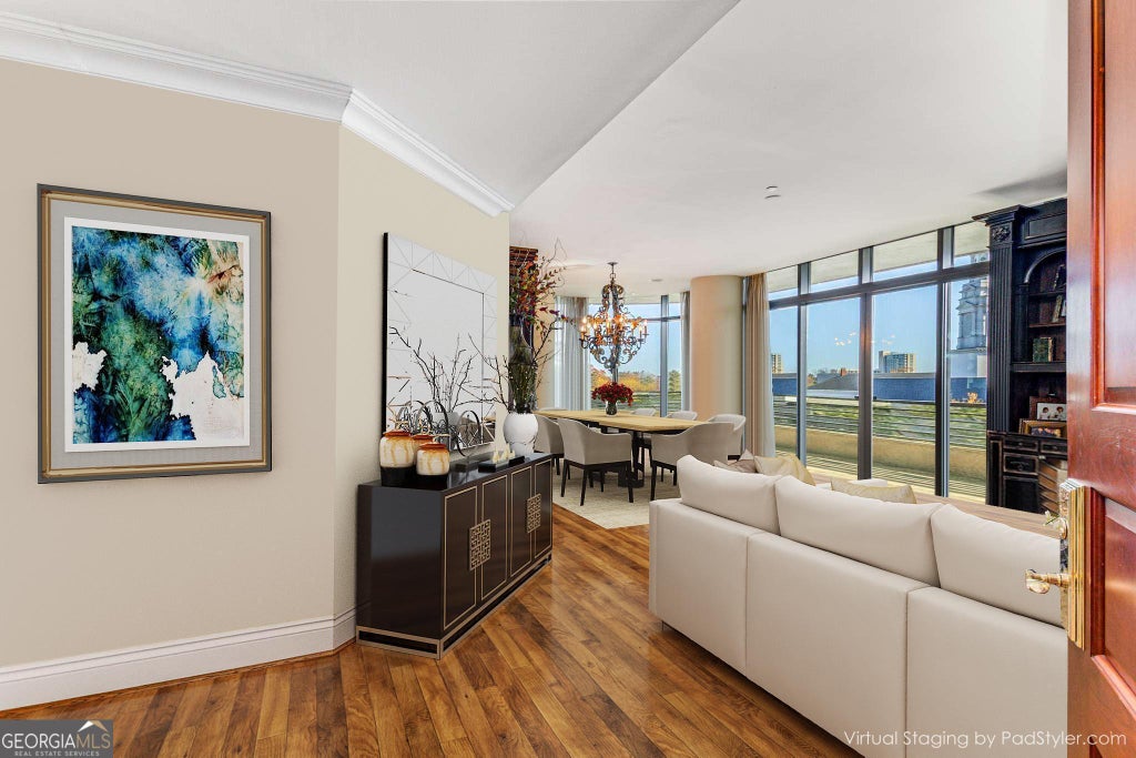 Discover the epitome of luxury living in the heart of Buckhead at 750 Park Avenue. Experience unparalleled service and amenities, including 24/7 security, gated grounds, valet, on-site maintenance and management, and concierge. Relax by the resort-style pool, entertain in the two social rooms, or store your finest vintages in the climate-controlled wine cellar. The fitness center, complete with sauna and steam room, ensures your wellness is a top priority. Step into your semi-private elevator and be whisked directly to your floor, where your private foyer awaits. Inside this stunning residence, you'll be captivated by the abundant natural light and breathtaking views. Floor-to-ceiling windows open onto wrap-around balconies, seamlessly blending indoor and outdoor living. The well-designed split floorplan offers privacy for guests, with a guest room featuring an ensuite bath. The primary bedroom boasts multiple closets and a luxurious bath with a soaking tub, large shower, and double vanities. The spacious kitchen, equipped with ample storage, an island, and an eat-in nook, is perfect for both everyday meals and entertaining. Additional features include two parking spaces, a storage unit, and a wine bin. Located near neighborhood walking trails, parks, and some of the finest shopping and dining in the southeast, this residence truly has it all. Come and see the exquisite lifestyle that awaits you at 8E!