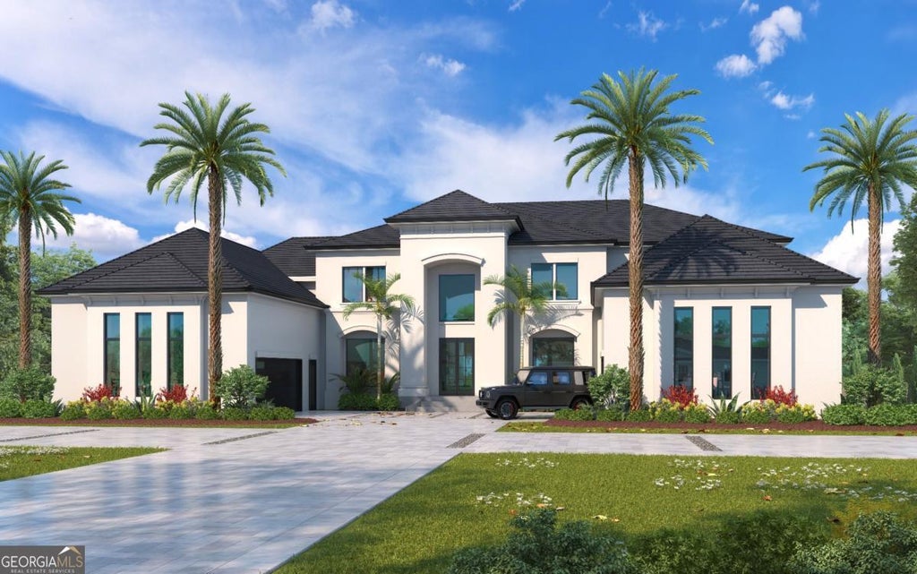 Introducing a rare opportunity to own a refined and modern residence in the prestigious Le Chateau Estates Subdivision of Fairburn, GA, one of South Atlanta's most coveted gated communities, known for its modern European-inspired design and tranquil, natural surroundings. Scheduled for completion in Q1 2026, this striking 4,000 sq/ft modern transitional home is being meticulously crafted by renowned custom builder Boye Akinola of Boye Luxury Homes. Nestled on a pristine private lot, the home embodies the perfect blend of architectural elegance and serene living. Thoughtfully designed by award-winning architect Boye Akinola, the Sotero Plan boasts five spacious bedrooms and four and a half bathrooms, offering an ideal blend of style, functionality, and luxury. This thoughtfully curated home features premium finishes and top-tier design selections throughout. Step into an impressive open-concept layout, highlighted by soaring 20-foot ceilings in both the entry foyer and great room. Expansive California-style sliding glass doors create a seamless flow between indoor and outdoor spaces, perfect for both entertaining and everyday living. At the heart of the home lies a chef-inspired kitchen, featuring custom cabinetry, a stunning Quartz waterfall island, a walk-in pantry, and a bright, welcoming breakfast area. The main-level primary suite is a private sanctuary with unobstructed lake views and lush landscape vistas. It includes a generously sized walk-in closet and a spa-inspired bathroom adorned with sleek, contemporary finishes. Complementing the primary suite are four additional bedrooms, each designed with comfort and privacy in mind. All but one of the secondary bedrooms on the upper level feature ensuite bathrooms, making this home ideal for families or guests seeking personal space and convenience. The home's surroundings are equally exquisite, with professionally designed, lush landscaping that enhances privacy while seamlessly blending with the natural lakefront environment. The entire subdivision will feature pristine, manicured grounds, offering residents a heightened sense of exclusivity, comfort, and peaceful living. Additional features include: Energy-efficient insulated modem windows and exterior doors 10-foot ceilings on the main level Wide-plank hardwood flooring in all bedrooms Frameless glass showers Well-appointed laundry room with cabinetry and a wash sink Please Note: Rendered images may reflect optional upgrades, such as accent walls, floating vanities, and a future pool. The addition of a full basement and custom upgrades can be completed at an additional cost. Le Chateau Estates introduces the vibrant sophistication of Miami, Los Angeles, and Lagos to Atlanta, establishing the city's premier and only modern luxury residential community. For more formation or to schedule a private consultation, please contact the listing agent.