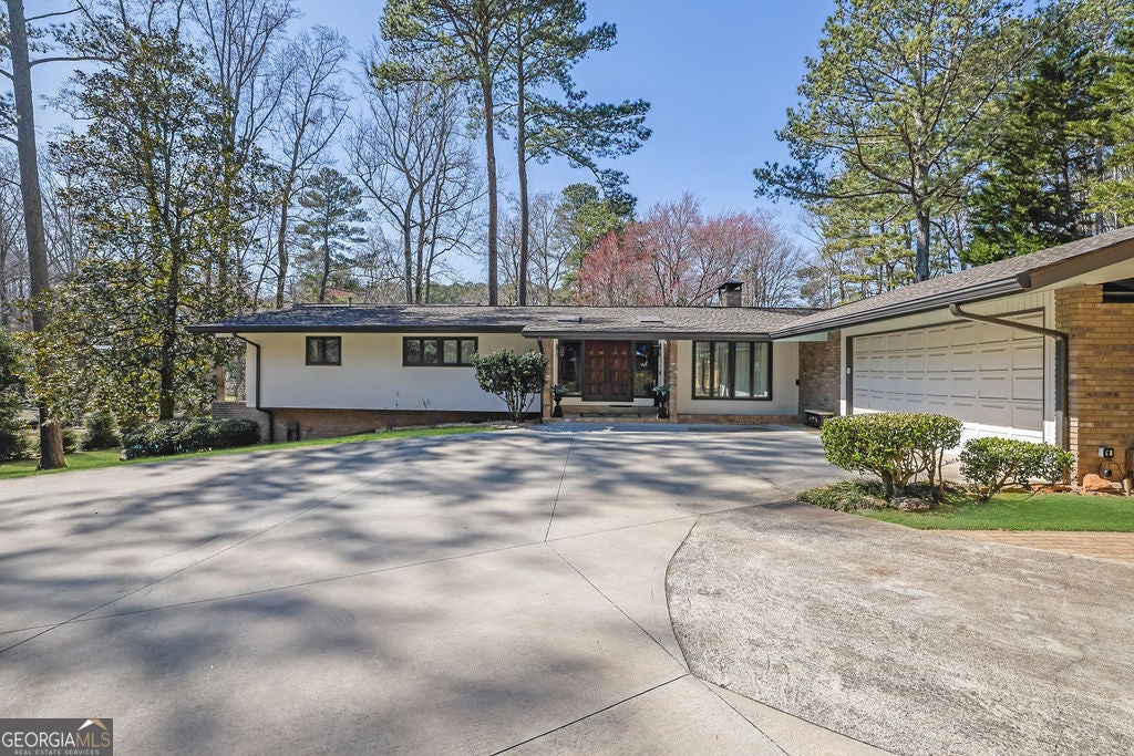 Imagine a home where timeless charm meets modern sophistication, set on a lush 1.046-acre estate. This sprawling ranch on basements, built in 1964 and lovingly cared for by its sole owner since 1967, offers not just a residence but the opportunity to craft your own legacy. Ideally located near interstates 75 and 285, top-rated schools, and a variety of shopping and dining options, this distinguished property blends convenience with serene living. As you step through the front door, the slate-floored foyer greets you with a sense of understated elegance. It sets the tone for the exquisite details and thoughtful updates found throughout this remarkable home. Spaces to Savor - Sitting Room/Living Room: Sunlight cascades through generous windows, highlighting gleaming hardwood floors. This room invites quiet morning reflections or cozy evening conversations, offering the perfect blend of comfort and sophistication. Dining Room: Picture hosting unforgettable gatherings in the formal dining area. A dual-sided fireplace lends its warmth and charm, enhancing the ambiance of every shared meal. Family Room & Gourmet Kitchen: Imagine lively conversations and culinary creations in a home chef's dream kitchen, fully equipped with a gas cooktop, griddle, grill, double ovens, and a sleek Samsung smart refrigerator. Black granite countertops and soft-close cabinets ensure both beauty and function. Exposed beams and a cozy sitting area by the dual-sided fireplace complete the space, making it the heart of the home. Your Personal Sanctuary - Master Suite: The grand master bedroom is a haven of tranquility. Featuring engineered hardwood floors, custom built-in furnishings, and dual closets, this space offers both luxury and practicality. Master Bath: Indulge in spa-like relaxation with handmade Mexican tile flooring, skylights, dual vanities, a jetted tub, and a separate shower. Heated towel racks and a custom built-in for a mini wine cooler add thoughtful touches of opulence. Endless Possibilities - This home boasts two fully finished walkout basements, each tailored to meet diverse lifestyle needs. First Basement: Open and inviting, this space features a full bath and an antique billiard table, ideal for leisurely gatherings. Direct access to the heated gunite pool and an RV parking pad with a power hookup makes it perfect for entertaining, creating an in-law suite, or establishing a home theater. Second Basement: Two bonus rooms provide flexible options for a home office, gym, or creative studio. A half bath and ample open storage complete this versatile level. Exceptional Amenities - Heated Gunite Pool: Picture yourself enjoying sun-soaked days by the pool, surrounded by the peaceful beauty of your private oasis. Butler's Pantry: A charming butler's pantry along the hallway enhances organization and ensures effortless entertaining. Garage & Utilities: The two-car garage features epoxy floors and an electric car charger, catering to modern needs. A whole-home water filtration system offers peace of mind and added comfort. Abundant natural light fills every room, creating a warm and inviting atmosphere. Outdoors, a fire pit table offers the perfect setting for starry evenings, while the meticulously landscaped grounds provide both beauty and privacy. With proximity to interstates 75 and 285, this home offers easy access to top-rated schools, upscale shopping, and a variety of restaurants. Despite its convenient location, the property provides a peaceful retreat, blending urban accessibility with suburban tranquility. Built with enduring quality and thoughtfully updated over the years, this ranch home offers the perfect blend of timeless design and modern luxury. It stands ready to welcome its next discerning owner, promising to be the backdrop for a lifetime of cherished memories. Now is your chance to own a piece of architectural history, perfectly crafted for today's lifestyle.