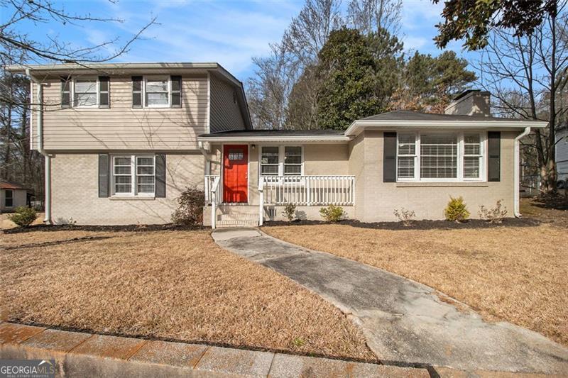 This spacious 5-bedroom, 2-bath split-story home offers a welcoming brick and hardy exterior with a covered side porch. The property includes a 2-car detached carport and a laundry room located on the lower split-level for added convenience. Inside, the kitchen features granite countertops and stainless steel appliances, all in good working condition. Laminate wood flooring is found in the main areas, with carpeting throughout the bedrooms, except for the kitchen. A perfect blend of comfort and functionality in a charming home!