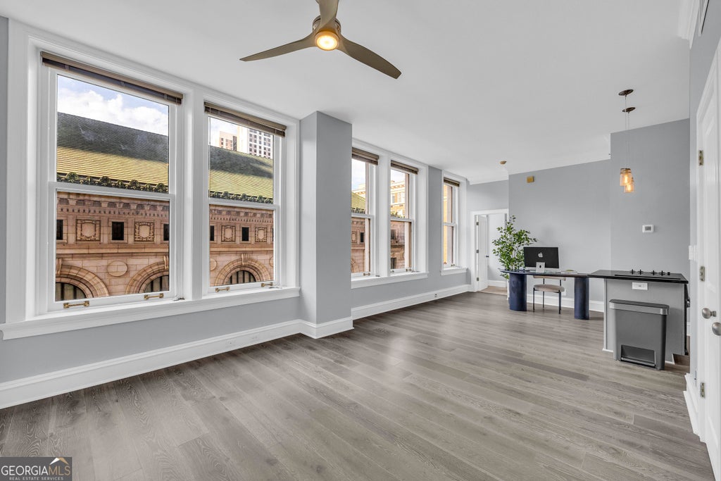 Welcome to your new home in the historic Healey Building, a timeless masterpiece nestled in Atlanta's Fairlie-Poplar District. This stunning 5th-floor condo offers an exceptional blend of early 20th-century architecture and modern sophistication, making it an ideal retreat for urban dwellers who appreciate both charm and convenience. From the moment you step inside, you'll be captivated by the soaring 9-foot vintage windows, flooding the space with natural light and showcasing breathtaking cityscape views. Whether you're savoring your morning coffee or unwinding after a long day, this front-row seat to Atlanta's Arts & Entertainment District never disappoints. Location is everything, and this condo places you right in the heart of it all. Step out onto the Broad Street Boardwalk, where vibrant cafes, restaurants, and entertainment hotspots bring the city to life. With the Atlanta Streetcar, Five Points, and Peachtree Center MARTA stations just moments away, Midtown, Buckhead, and even the airport are within easy reach. Whether you're commuting for work or heading out for a night on the town, seamless connectivity is at your fingertips. Beyond its stunning architecture, the Healey Building boasts an impressive array of modern amenities designed for effortless city living. Residents enjoy high-speed fiber internet, a 24-hour concierge, and top-tier security services. Hosting guests? Take advantage of the on-site guest suite. Need a productive space? The conference room is perfect for meetings. Additional conveniences include a vintage mail chute, remote keyless entry, a state-of-the-art package system, and newly updated fitness and cardio facilities-all thoughtfully designed to enhance your lifestyle. Don't miss the opportunity to own a piece of Atlanta's history while enjoying the comforts of contemporary living. Whether you're a first-time buyer, a busy professional, or an investor seeking a prime downtown property, this 5th-floor condo in the Healey Building offers the perfect blend of elegance, convenience, and city energy. Schedule your showing today and experience the best of urban living in one of Atlanta's most iconic buildings!