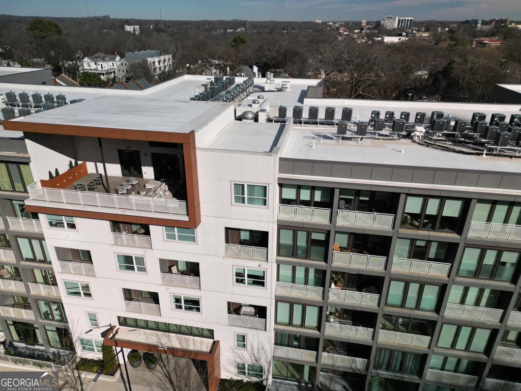 Luxury Midtown Condo with Stunning Views - Motivated Seller! This top-floor condo offers breathtaking city views, adjacent to the rooftop lounge with minimal obstruction from the Hadley building. Features include custom California Closets, Alexa-controlled window shades, and a coveted deeded climate controlled storage unit near the elevators. Located in the Garden District, it's within walking distance to Piedmont Park, Fox Theatre, and Georgia Tech. Enjoy 2 secure parking spots, 24/7 concierge, a fitness center, saltwater pool, dog spa, and sunset terrace. The kitchen boasts KitchenAid appliances, and the home has 10-ft ceilings, large backlit bathroom mirrors, and more..