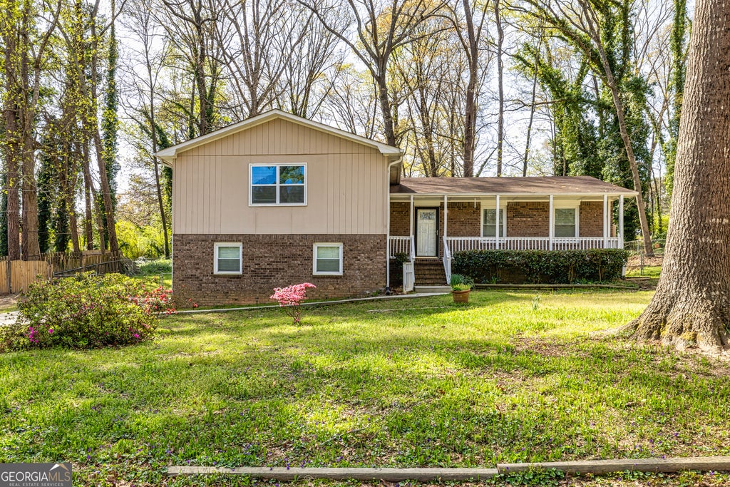 Nestled on over half an acre, this charming four-bedroom, two-bath multilevel home offers a perfect blend of comfort and convenience. A cozy front porch welcomes you inside, where you'll find a beautifully updated kitchen featuring tile floors, stainless steel appliances-including a gas range, refrigerator, dishwasher, and microwave-modern cabinetry, and solid-surface countertops. The main level boasts a formal living room that can double as an office or flex space, a separate dining room, and a spacious family room with a fireplace and brand-new carpet. Upstairs, you'll find four generously sized bedrooms and two updated bathrooms with stylish tile showers and new vanities. The primary suite includes a large walk-in closet for ample storage. Additional highlights include updated windows throughout, new garage doors, a freshly paved driveway, and a convenient storage shed. Step outside to the backyard oasis, complete with a covered deck and pergola-perfect for entertaining or relaxing. Ideally located close to shopping, restaurants, and more, this home is a must-see!