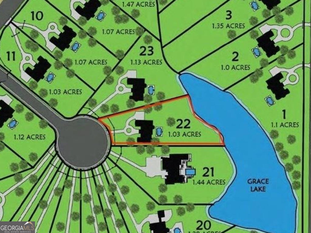 Welcome to the beautiful Le Chateau Estates! Le Chateau Estates offers amazing estate lots; ready for the construction of your luxurious private estate home. LCE subdivision has luxury custom homes designed by the renowned Atlanta award-winning celebrity architect Boye. Lot 22 offers options for your dream home, ranging from 3800 sqft to 7000 + sqft, and panoramic views overlooking the beautiful Grace Lake in your backyard. Your new dream home will be meticulously built with a luxury open concept, graced with immaculate hardwood floors, linear fireplaces, custom cabinets, high vaulted ceilings, deluxe landscaping, pool options, and the grander of elegant trim throughout; this is luxury living at its finest. This subdivision is situated on 40 acres with beautiful rolling woodlands highlighted by a private lake. Best of all it is conveniently located near Atlanta Hartsfield International, Serenbe, and the Porsche experience. With just a short 20-minute drive to downtown; you are in the center of it all. This is the opportunity of a lifetime to build a Boye custom dream home.