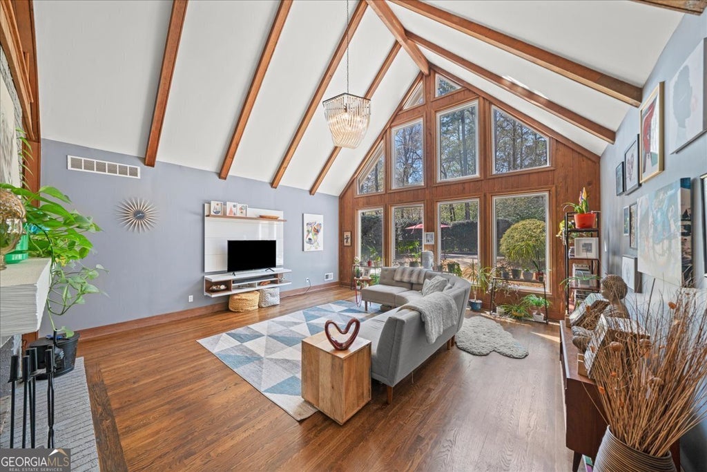 Interior Features | Vaulted Ceiling(s), Double Vanity, Walk-In Closet(s), In-Law Floorplan, Master On Main Level, Beamed Ceilings |