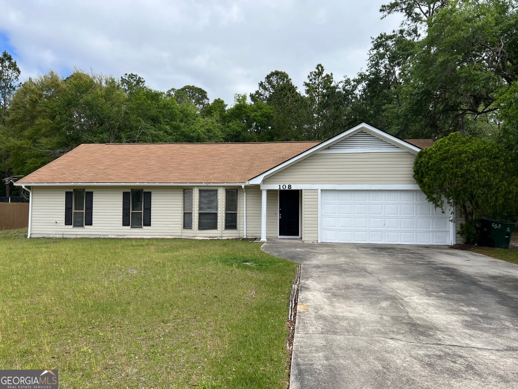3 bedroom, 2 bathroom, 1,686 sq ft house with foyer, living room, dining room, den, breakfast bar, refrigerator with icemaker, dishwasher, stove, and oven; 2 car garage, laundry room in Crooked River Plantation.