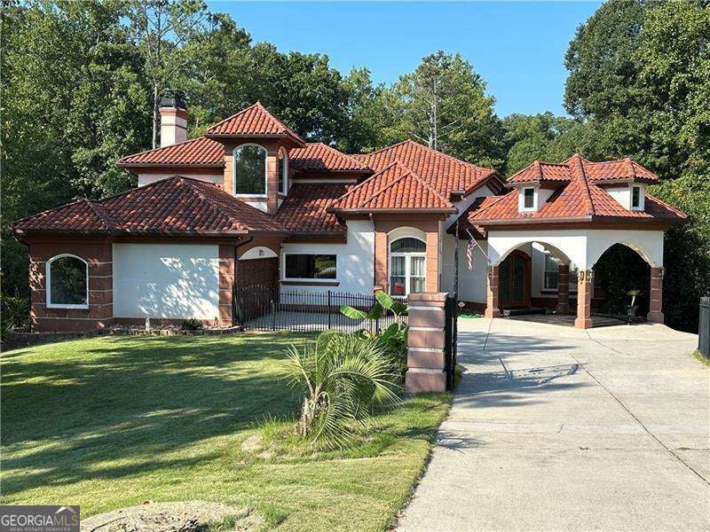Luxurious Custom-Built Estate with Exquisite Upgrades. Discover unparalleled luxury living at 725 Links View Dr, a meticulously crafted custom-built home in the sought-after community of Sugar Hill, Georgia. This magnificent residence, thoughtfully constructed by a seasoned builder with a passion for quality as their forever home, boasts an array of premium features and upscale finishes, promising a lifestyle of opulence and comfort. Adorned with a charming stucco exterior and crowned by a terracotta roof, this home exudes Mediterranean charm and timeless elegance from the moment you arrive. Step inside to be greeted by a grand Versace granite foyer, setting a tone of sophistication and luxury that continues throughout the home. The main level exudes sophistication, featuring granite floors in the formal living room adorned by a cathedral ceiling. An office with hardwood floors provides a serene workspace, ideal for remote work or personal projects. Convenience is paramount with a half bathroom featuring granite floors and walls. Indulge in the lavish comforts of the primary suite on the main level, offering a dome ceiling, hardwood floors and an ensuite bathroom adorned with granite/marble floors. Pamper yourself in the luxurious amenities, including a whirlpool-style tub, walk-in shower, bidet, and gold-accented double vanities. Crystal door knobs add a touch of glamour to the space, ensuring an indulgent experience at every turn. Entertain in style in the formal dining room, adorned with sleek granite floors, creating an ambiance of sophistication and refinement. The gourmet kitchen is a culinary enthusiast's dream, outfitted with top-of-the-line appliances, including a Gaggenau cooktop and Miele ventilation hood, enhanced by granite countertops, offering both functionality and beauty. The kitchen seamlessly flows into the family room, creating a harmonious space for everyday living and gatherings. Upstairs, two generously sized bedrooms boast hardwood floors and share a full bath with granite floors and walls, providing comfortable accommodations for family members or guests. The finished cedar wood basement is an entertainer's paradise, boasting a full Tiki bar, crown molding and luxurious granite floors. A bedroom with a sliding door leading to the inviting in-ground pool area offers a serene retreat for guests, while a full bath adds convenience. Step outside to the pool area, where a built-in gas grill awaits, perfect for outdoor gatherings. A half bathroom with granite floors and accents ensures ultimate convenience while enjoying the poolside ambiance. Enhancing the outdoor experience is a charming backyard bridge that spans over a tranquil fountain pond, adding a touch of serenity to the landscaped grounds. For added versatility, a separate two-story outbuilding with a garage presents an opportunity for conversion into an accessible dwelling unit, ideal for guests or extended family members. Additional features of this exceptional property include a private electric gate and an irrigation system, ensuring convenience and security. Experience the epitome of luxury living at 725 Links View Dr, where every detail has been carefully considered to create a residence of unparalleled elegance and sophistication. Don't miss your chance to make this extraordinary home your own. Schedule your private showing today.
