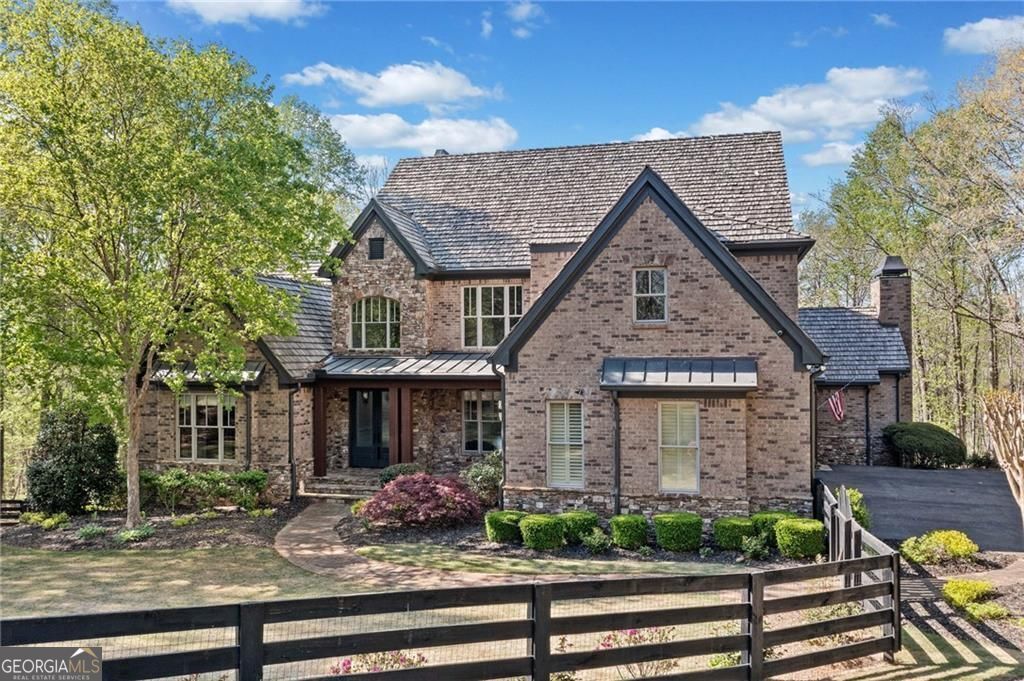 This private estate in Woodhaven Bend is on a charming almost 4-acre plot by the Etowah River. It's a unique find that combines nature with design. Beyond the gates, a winding drive leads to a custom-built home that showcases exceptional craftsmanship, comfort, and style, with rich millwork, six fireplaces, and coffered ceilings that evoke timeless elegance. The kitchen, recently renovated, is a warm and inviting space perfect for both casual gatherings and gourmet cooking. It offers leathered countertops, custom cabinets, and premium appliances. These details flow effortlessly into a warm fireside keeping room and a light-filled breakfast nook. The main-level Primary Retreat is a serene oasis, complete with a spa-inspired bath and spacious walk-in closet. Upstairs, three spacious ensuite bedrooms and a cozy loft provide ample space for guests or family. The terrace level is an entertainer's dream, featuring a media room, full bar, billiard space, a second spacious primary suite with an en suite bath perfect for guests or in-laws and a brand-new sleek home gym. Outside, your own private resort awaits, featuring an outdoor kitchen with wood-burning fireplace, stone patio for relaxing, a PebbleTec saltwater pool, cascading stone waterfall, hot tub, and direct access from your backyard to miles of scenic trails and the Etowah River. Woodhaven Bend residents enjoy exclusive access to community features. They can use a boat launch, relax in riverside pavilions, and explore 50 acres of preserved green space. This luxury retreat near Ball Ground offers privacy and convenience in a beautiful setting. Marketed exclusively by Path & Post Real Estate. Where we think every extraordinary home tells a unique story.