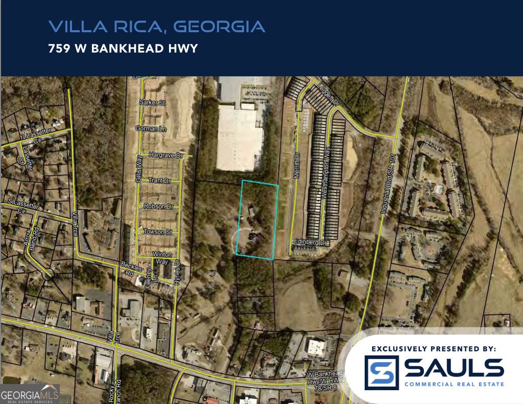1. +/-4.13 Acres 2. Zoned I2 3. Approx. .7 miles north of I-20 4. 34 miles west of Atlanta 5. Additional Land Available