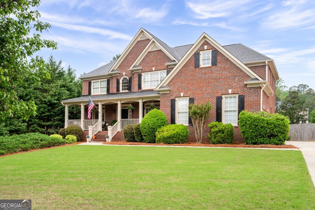 Prime Marietta location! Beautifully maintained three-sided brick home in desirable McDaniell Farm. This spacious 5-bedroom, 4-bathroom home has a full unfinished basement that is stubbed for a bathroom. The home welcomes you with a stately covered brick front porch. Step inside to find a classic layout with a formal living room and dining room with butlers pantry-ideal for entertaining or hosting holiday gatherings. The heart of the home is the impressive two-story great room, filled with natural light from soaring windows, creating a bright and inviting space. The updated kitchen features an island, granite countertops, brand-new appliances, and breakfast area providing a stylish and functional layout for everyday cooking or entertaining. The laundry room is conveniently located nearby, and the home offers two staircases-one off the entryway and another from the family room-offering easy access to the second floor. A guest bedroom with a full bathroom on the main floor provides convenience and privacy for visitors or a perfect home office option. Upstairs, the expansive primary suite is a true retreat with a tray ceiling, a cozy sitting area, a luxurious ensuite bath with a separate jetted tub and shower, and an oversized walk-in closet. A Jack and Jill bathroom connects two additional bedrooms, while a fourth bedroom enjoys its own private full bathroom. The home sits on a great flat lot with a newly built back deck, perfect for enjoying outdoor gatherings or morning coffee. Additional updates include two new AC units and furnace (2024) and a newer hot water heater (2022), ensuring peace of mind and modern comfort. Located near the community clubhouse and pool, and just minutes from local schools, shopping, and dining, this home is the perfect blend of space, style, and location. Don't miss the opportunity to make this your forever home in the heart of Marietta!