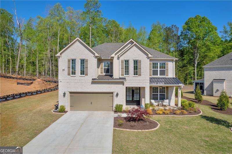 Welcome to The Marshall Plan by Heatherland Homes - where thoughtful upgrades meet timeless design. This stunning 5-bedroom, 3.5-bath brick home offers the rare and versatile feature of two primary suites - one on the main level and one upstairs - making it perfect for multi-generational living, extended guests, or ultimate privacy. Built in December 2023, the home has since been enhanced with numerous high-end upgrades that elevate both comfort and functionality. Inside, the main level showcases two-story foyer, separate dining room, a warm and inviting open concept family room with fireplace and coffered ceilings and a bright breakfast area. Also on the main level you will find the first of two oversized primary suites w/a primary bath with oversized shower w/upgraded tile and flooring. The chef's kitchen is the heart of the home, complete with a large island, quartz countertops, double ovens, and a generous walk-in pantry. Upstairs, enjoy movie nights in the media room, or retreat to the luxurious second primary suite featuring his-and-hers closets, and a spa-inspired bath with a frameless glass shower and upgraded tile. Significant owner-added enhancements include: Accent walls w/designer paint upgrades; screened-in back porch and extended patio, perfect for enjoying outdoor living in comfort; polyaspartic floor coating in the garage, front and back porches, and patio - durable, sleek, and easy to maintain; full ADT security system with doorbell camera and four exterior cameras, providing peace of mind; exterior accent lighting installed around the entire home, creating beautiful curb appeal after sunset; hardwired CAT 6 Ethernet connections in every room for reliable, high-speed connectivity. Other standout features include frameless showers in both primary suites, upgraded tile and shower flooring, a covered front porch, and a spacious 2-car garage. In addition this home is set in a vibrant community offering swimming, tennis, playgrounds, lake, fishing, optional country club/golf. This home truly blends style, security, and smart upgrades - ready for you to move in and enjoy.