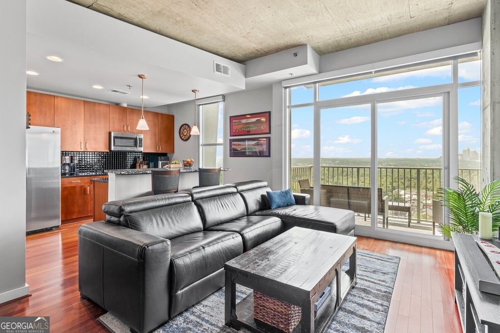 Welcome to luxury living at Eclipse, located at 250 Pharr Rd NE, in the vibrant heart of Buckhead! This 19th floor unit not only offers unparalleled views, showcasing the best of Buckhead, Midtown, and Downtown, with unobstructed vistas of the iconic Atlanta Fish Market, it also features one of the most private balconies in the building! This exquisite 1-bedroom, 1-bathroom condo boasts an open-air, loft-style design, newly painted interior and luxury vinyl plank (LVP) flooring throughout. The 10-foot ceilings and floor-to-ceiling windows (with upgraded screens for shade) flood the space with natural light, creating a bright and airy atmosphere. The modern kitchen includes granite countertops, ample cabinet space, and an island perfect for entertaining. The spacious master closet comes with built-ins, while the master bathroom offers generous countertop space and in-unit laundry, with a washer and dryer included in the sale. Eclipse offers an array of premium amenities, including a rooftop pool with stunning skyline views, a fully equipped gym, a concierge service, a club room, and a secure parking garage with a dedicated space. Additionally, you'll find a convenience store on-site. Just steps from your front door, you'll enjoy easy access to shopping, dining, grocery stores, nightlife, fitness centers, and more. ** Up to 1% lender credit with Preferred lender Melia Conigliaro with Align Financial. Use the incentive to alleviate closing costs or buy down your interest rate. **