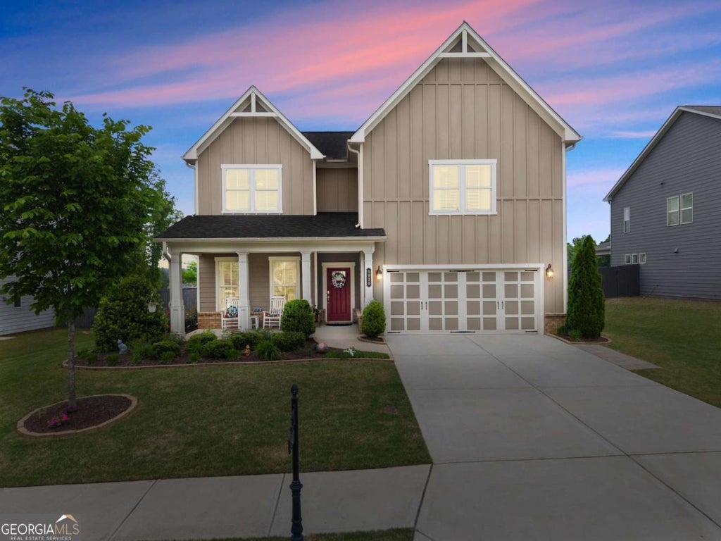 Welcome to this beautifully designed Craftsman-style home that seamlessly blends classic architecture with contemporary luxury. From the inviting front sitting porch, you immediately feel a sense of warmth and belonging. Inside, an open-concept floor plan connects the chef-inspired kitchen featuring double ovens and a walk-in pantry, a spacious living room, creating an ideal space for entertaining and everyday living. The main-level primary suite offers ultimate convenience, with his-and-hers closets and a spacious en-suite bath boasting a separate shower and soaking tub, double vanity, and ample storage. Storage throughout the home is abundant, thanks to smartly designed built-ins and hidden nooks cleverly integrated into the layout. A main-level half bath provides comfort and privacy for guests. Upstairs, youCOll find two additional bedrooms, each with their own private en-suite bathrooms, perfect for guests, older children, or multi-generational living. A second living room on this level offers extra space to relax, work, or entertain. Step outside to your screened-in back porch retreat, complete with a wood-burning fireplace, mounted TV, and a built-in grilling stationCoideal for year-round outdoor enjoyment with mountain views. Additional highlights include a 2-car garage, thoughtfully landscaped yard, and access to neighborhood amenities such as a pool, tennis courts, and a scenic pond. This home truly checks every box for comfort, flexibility, and style-ideal for families of all shapes and sizes. **$1K Preferred Lender Credit Available with Brittany Evans, Nexa Mortgage and Home Warranty option offered on this home!!**