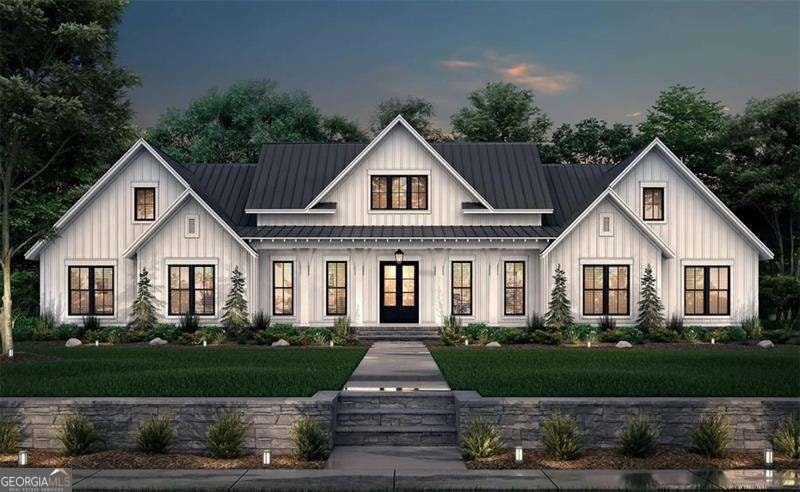 NEW CONSTUCTION - To Be Built Home by Trilogy Contracting Group. 8Co12-month completion time. Located in the desirable Ball Ground community. This to be built home sits on 5.4 ACRES with Sharp Mountain Creek in your backyard! You also have access to a private pond. This gorgeous farmhouse style, ranch home, features 4 large bedrooms. Primary on main! 3.5 bathrooms. Optional BONUS room upstairs that would turn this into a 5 bedroom/4.5 bathroom home. Right off the foyer you have an office space-perfect for working from home. Open concept with eat in kitchen, dining room and spacious living room. Walk in pantry. Mudroom/Laundry room. Access to laundry room from primary Walk in Closet, what a dream! Entertainers home with a LARGE Gameroom on backside of home. Perfect to have guest over with access to deck. Full unfinished basement. You are able to pick out colors and selections with our design team. This home has it all!