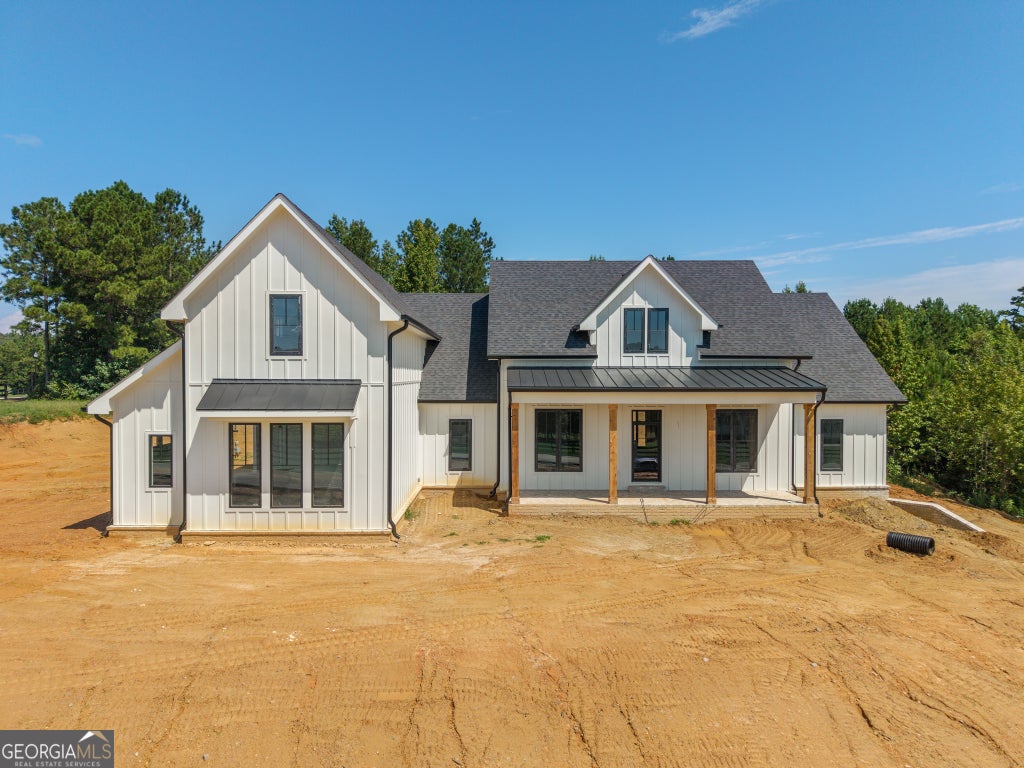 NEW CONSTRUCTION! Modern Farmhouse Retreat on Over 4.5 Acres. Welcome to this stunning ranch-style modern farmhouse, where luxury meets craftsmanship on more than 4.5 acres of serene countryside. Spanning over 3,300 square feet, this beautifully designed 4-bedroom home offers a seamless blend of elegance, functionality, and high-end finishes throughout. As you arrive, you're greeted by striking curb appeal and a spacious 3-car garage featuring custom teak wood doors. Step inside to soaring volume ceilings, exquisite trim work, and thoughtfully selected decorative fixtures that make every room feel elevated. The open floor plan flows effortlessly, anchored by a chef's kitchen equipped with high-end appliances, a built-in wine cooler, quartzite and marble countertops, and custom cabinetry throughout. The primary suite is a true retreat with spa-inspired finishes, custom tile work, and an incredible walk-in closet outfitted with premium shelving. Additional features include a massive bonus room with its own bath-perfect for a home office, gym, or guest suite-and a full walkout basement offering limitless potential. Entertain with ease on the covered rear porch, or enjoy immersive sound from the app-controlled surround system. Other luxury upgrades include commercial-grade windows and doors, hardwood flooring, tankless water heater, spray foam attic insulation, and hardwired security cameras. Absolutely no detail has been overlooked-nothing is builder grade. Experience modern farmhouse living at its finest-privacy, space, and unmatched quality-all just minutes from town.