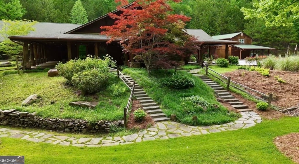Excellent opportunity to own one of the most celebrated properties in North Georgia - The Old Mill Lodge and Land formerly known as Lakota Cove. Perfectly positioned just off of Cove Road between the fast growing town of Jasper and the sought after Big Canoe community, this extraordinary log structure offers just under 12,000 square feet of versatile space on more than 7 scenic acres, complete with a rushing mountain creek, expansive covered porches, an outdoor concert stage, and beautifully maintained grounds. Built in 2004 and zoned for neighborhood commercial use, this property is ideal for a wide range of uses-retail, event venue, worship center, nonprofit headquarters, bed and breakfast, glamping campground, retreat center, or restaurant. Previously used as a sought-after retail destination, venue space and conference site, this modern yet rustic space is thoughtfully designed to support both large-scale gatherings and retail or intimate retreat experiences. Inside, you'll find a massive stone fireplace anchoring the main hall, warm log construction throughout, a high-end kitchen tailored for hospitality or culinary ventures, a spacious banquet or showroom area, multiple breakout rooms, a large service counter or bar, and a separate outbuilding for storage or office use. With its strategic location, flexible layout, and stunning natural setting, this property is perfectly suited to serve Pickens County's growing tourism industry and upscale local clientele. Extensive landscaping and meticulous upkeep make it truly move-in ready-this is more than a venue; it's an opportunity to create something exceptional. Additional Acreage Available for Purchase While we are pleased to offer this rare opportunity, The Lodge at Old Mill is still functioning as an operating business and continues to take reservations for booking your venue needs. EQUIPMENT LIST: 175 wooden event chairs 15 rounds 60 inch 2 love seats and 4 chairs 3 8ft banquet servers Antique round table Antique long table Prep stations 2 ice bins 2 couches Fully equipped kitchens TV Brand new 5 burner gas stove Event curtains Baby grand piano 6 Adirondack chairs 4 high tops Outdoor gazebo stage Multiple planters Game Room/ couch chairs games fridge bar 2 wooden signs String lights throughout Multiple planters