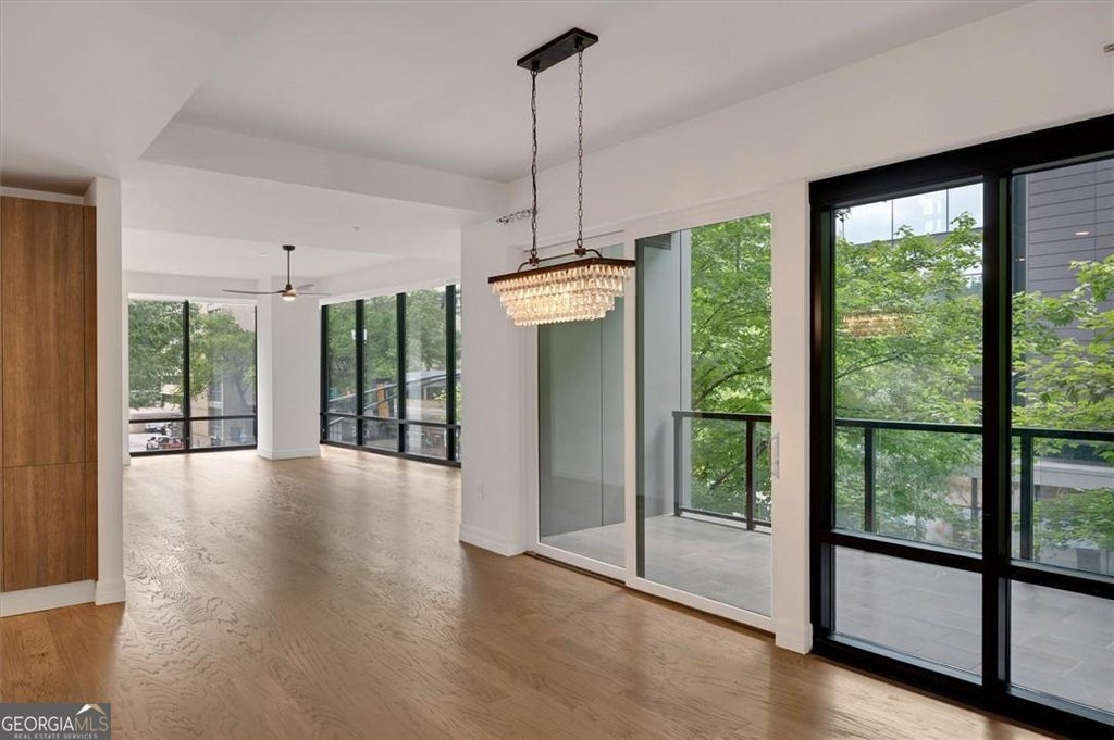 Experience luxury city living in this expansive 3-bedroom, 3-bath corner residence in Seventh Midtown, one of Atlanta's premier boutique condominiums. Boasting a large floor plan on a single level, with only 3 units per floor, this residence offers high 10-foot coffered ceilings, floor to ceiling windows, and rich hardwood flooring throughout. Featuring exceptional indoor/outdoor interface, a spacious living room, a dining area that seats 12, and a chef's kitchen with solid surface counters, an eat-in island, Pedini cabinetry, and premium Wolf and Sub-Zero appliances, the entire unit is designed for comfort and accessibility. The home includes wide hallways, elevator access, and oversized, split-bedroom layout. The primary suite is a true retreat with an en-suite bath, double vanities, soaking tube, frameless shower and custom walk-in closet. Additional highlights include a wet bar, insulated windows, Waterworks fixtures, and laundry room. Enjoy private outdoor space on your covered balcony, a large, conditioned private storage room, and the convenience of two assigned garage parking spaces with secure access. Located in a gated building with attentive concierge services, 24-hour security, residents enjoy access to a full-service business center and resort-style amenities including a skyline saltwater pool, state-of-the-art fitness center, clubroom, billiards, and private screening lounges. With easy access to MARTA, dining, shopping, Piedmont Park and the Beltline, HOA dues cover nearly everything else. All of this in a showcase building of only 20 residences for unparalleled privacy, luxury, and walkability in the heart of Midtown.