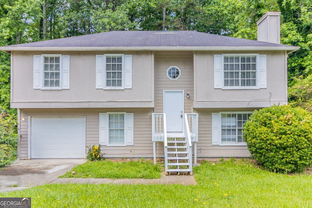 Charming, move-in ready 4-bedroom, 2-bath split-level home with great curb appeal and a 1-car garage! Enjoy the grassy front yard and fully fenced backyard with a deck just off the dining area perfect for entertaining. Inside, the upper level features a cozy living room with fireplace, carpeted floors, a dining area, and a kitchen with dark cabinetry and black appliances. Three secondary bedrooms are located upstairs along with a full bath featuring a shower/tub combo and convenient access to one bedroom. Downstairs, the spacious primary suite includes French doors to the backyard, a large walk-in closet, and an en-suite bath with soaking tub, separate shower, dual-sink vanity, and ample storage. Lower level also includes laundry connections, garage access, a utility closet, and under-stair storageCodonCOt miss this functional and inviting layout! Book your tour today!