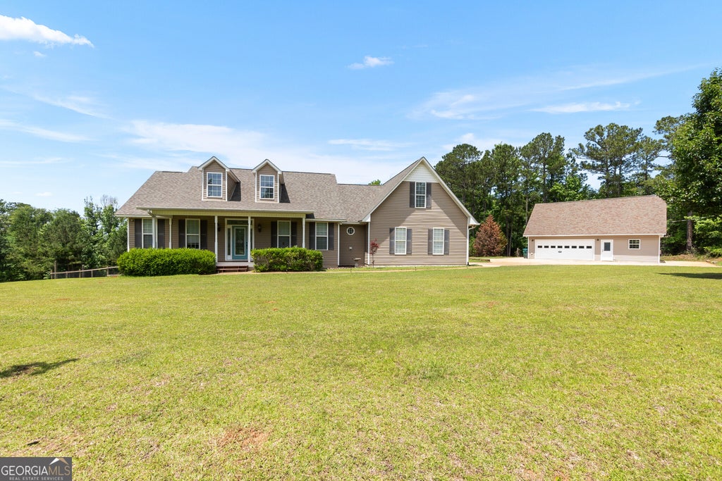 Are you looking for your ideal country home? Nestled on partially wooded 3.3 acres is a huge 2 story home with 6 bedrooms and 4.5 bathrooms, 2 large family rooms and a kitchen with 5 burner gas stovetop and cabinet organizers. 3 beds upstairs and 3 downstairs. Separate HVAC units.(1 replaced 3 years ago) No HOA ! There is room for chickens, goats or even horses on this gently sloped lot. There is an oversized, multi-level deck out back off of a covered porch just perfect for morning coffee or a big family bbq. The detached 2-car garage features 2 built in workbenches and stairs leading up to ample storage. You definitely deserve this quiet retreat that is just far enough away from town, yet conveniently positioned. Recreation area just 2 minutes away. Lake nearby.