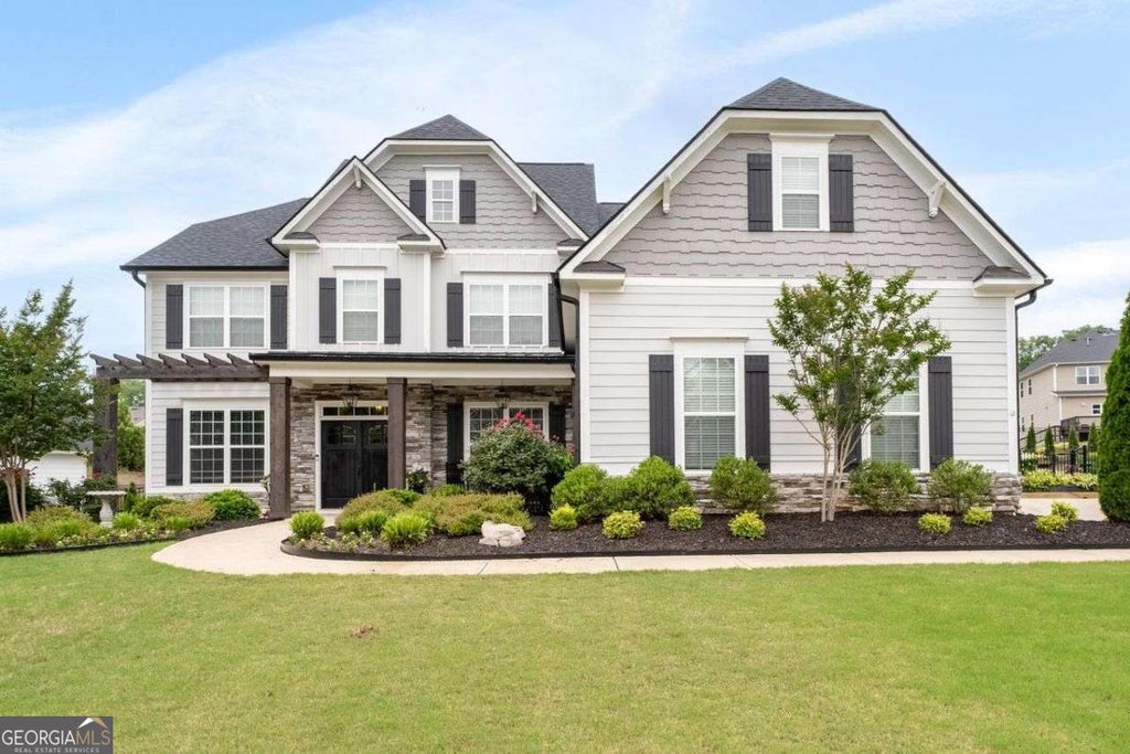 Welcome to this stunning 5-bedroom, 4-bath home nestled in the highly desirable Parkstone community. Built in 2018 and boasting nearly 4,000 square feet of thoughtfully designed living space, this meticulously maintained two-story residence combines elegant design, modern functionality, and everyday comfort. Step inside to discover soaring ceilings and a dramatic two-story living room featuring a breathtaking wall of windows that fills the home with natural light. A multi-room audio system adds a touch of luxury and convenience, ideal for relaxing evenings or setting the perfect atmosphere throughout the home. The open-concept kitchen is a homeowner's dream, complete with stainless steel appliances, double ovens, granite countertops, and a large center island that makes hosting gatherings effortless. Beautiful hardwood floors flow throughout the main level, complemented by extra-plush carpet in the upstairs bedrooms for added comfort. The spacious owner's suite is a true retreat, offering a massive walk-in closet and a luxurious en-suite bath featuring double shower heads and a relaxing Jacuzzi tub. Enjoy outdoor living on your covered front porch or unwind on the back patio overlooking the fenced-in backyard-ideal for pets, play, and parties. The 3-car garage offers ample room for vehicles, storage, and more. Located in one of the area's most desirable neighborhoods, Parkstone offers exceptional amenities and a true sense of community. This is more than just a house-it's a place to call home.