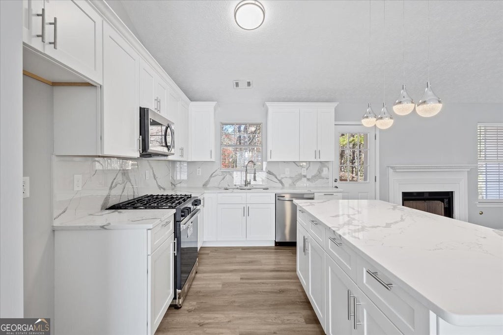 Beautiful Home in a cul-de-sac! New Roof/ painted inside out/ new water heater/ Flooring/ bathrooms. This split-level home is your chance to live in peace with a Spacious open concept in the living room area with a cozy fireplace and a kitchen that overlooks both the dining and family room. Brand new deck to enjoy peaceful views of the private, serene backyard and a meandering creek. The upper-level features three generous bedrooms, including a master suite with a tray ceiling, large window, and new bathrooms, and a walk-in closet. An additional full bathroom is also conveniently located upstairs. The lower level offers a versatile oversized bedroom. It also includes a separate entry to the backyard, a laundry room, and another full bathroom. NO HOA!
