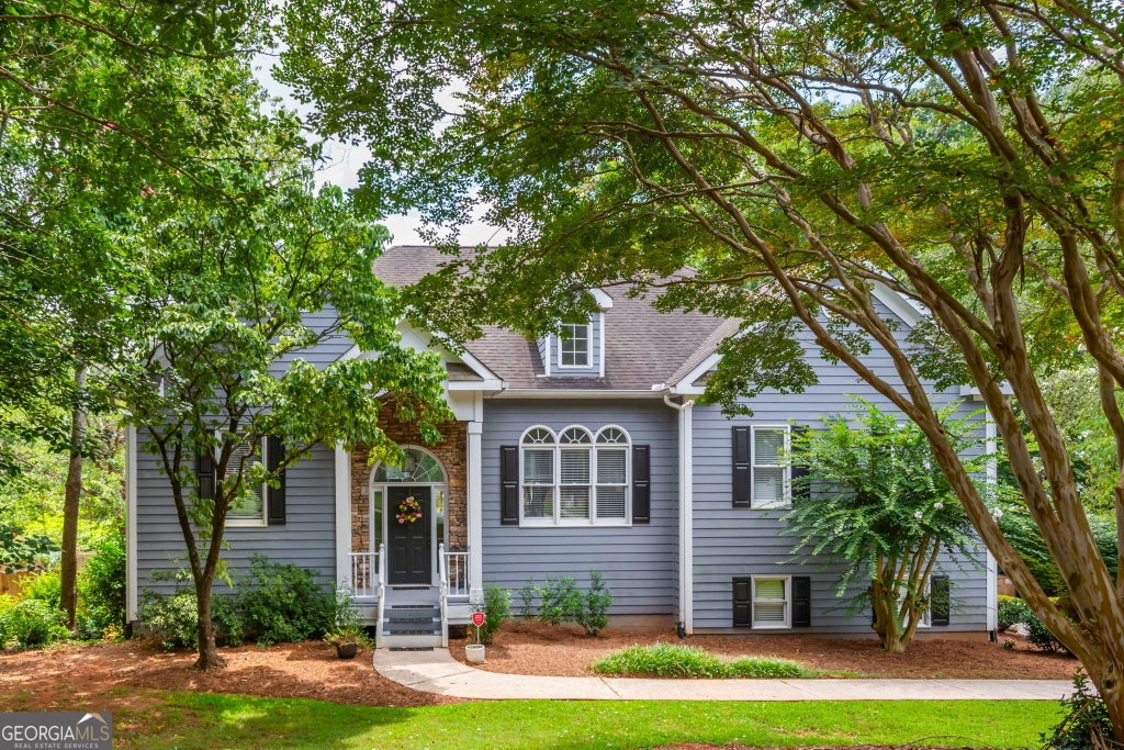 Step into this light filled renovated home where flora and fauna thrive. Natural light cascades through breathtaking windows in this open concept home. There is complete privacy with a tree canopy lining the back of this North Facing property. The yard is fenced and ready for entertaining and playing. White kitchen cabinets and new Calacutta quartz counters, stainless steel appliances, and a gas stove create a functional kitchen. Refreshing breath and relaxing energy speak to the heart of wellness in this luxuriously renovated master bathroom. The split bedroom plan creates plenty of privacy and convenience with a shared bathroom. There is also a separate half bath that serves this living area. The master, powder room and laundry on one side of the house, and two good sized bedrooms with a shared bathroom are on the other. The main level living walks out to an amazing back deck. The lower level offers a comfortable den with 9ft ceilings, the fourth bedroom, has a full bath, and two closets. Studio room located across from the light-filled den offers room for work from home office, crafting space, or can be converted to a kitchenette. There is a full size storage room. Neighborhood amenities include a newly renovated pool. This home can appeal to any discerning purchaser. This is your chance to build equity in Daves Creek Elementary,South Forsyth Middle and Highschool.
