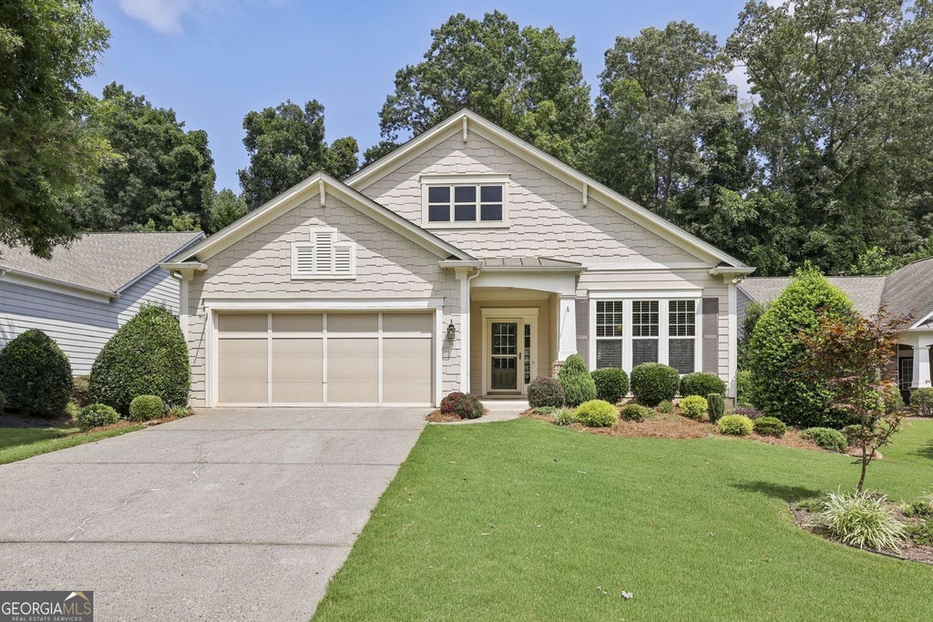 Move-in before the Holidays. PRICE REDUCED AGAIN!!! Move-In-Ready. Master-on-Main. Lawncare included in HOA. Private backyard. Freshly painted interior. Convenient South Forsyth location. Charming Craftsman-Style Ranch in Kingswood at Castleberry. A cozy and inviting 3-bedroom, 2-bath home with open-concept living AND a large covered Patio. Just minutes to GA400, The Collection, Northside Hospital, the Cumming City Center and the new Whole Foods Market. This friendly, amenity-rich neighborhood offers a clubhouse, large pool, pickleball courts, dog parks, sidewalks, and an active social committee-ideal for anyone looking to settle into a vibrant, connected lifestyle. You will find excellent curb appeal with lush landscaping and a welcoming covered front porch to set the tone for this home's warmth and charm. Inside, a formal foyer opens into a spacious Great Room with a gas fireplace and combined living/dining layout-perfect for entertaining. The Kitchen connects seamlessly to the Great Room and features granite countertops, a large island, warm cabinetry, built-in desk, and a sunny breakfast area-one of the largest kitchen layouts in the subdivision. A ramp with handrail from the garage leads directly into the Kitchen and Foyer, enhancing accessibility. The Master-on-Main Suite includes wide double doors, a trey ceiling, large windows overlooking the serene backyard, and a generous walk-in closet. The ensuite bath features dual vanities, a separate tub and shower, and an open water closet. (Note: minor updates could improve bathroom entrance, shower and closet accessibility.) Two additional bedrooms-ideal for guests, home office, or hobbies-share a full bath and are tucked away for privacy. Both bedrooms have ample closet space. A full-sized Laundry Room adds convenience. Listing agent has quotes for replacing carpet with LVP or updated carpet. The private backyard has a hill that could be planted in multiple colors of Azalea for a show-stopping view. Outstanding entertainment space.