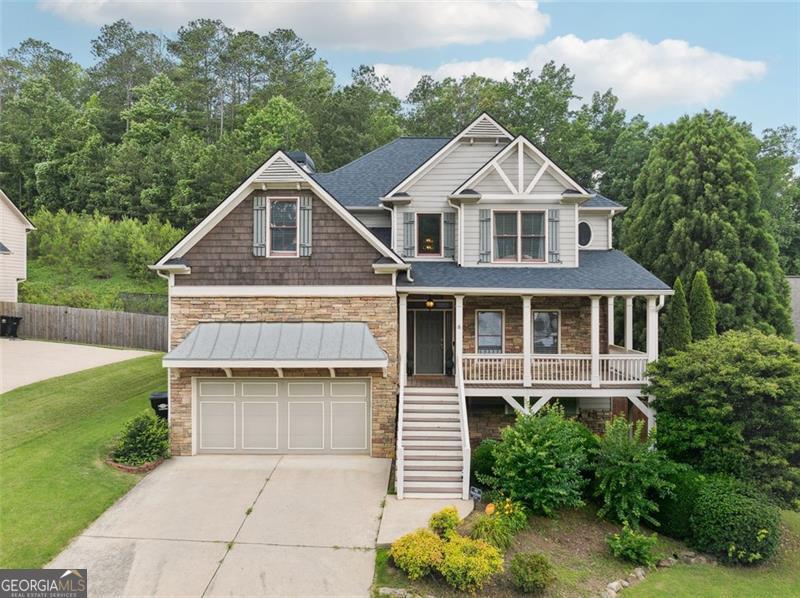**Back on the market with no fault to the seller** This four-bedroom, three-and-a-half-bathroom home offers plenty of space, thoughtful updates, and a warm, inviting feel from the moment you arrive. The wraparound front porch sets the tone for Southern charm, while the interior delivers a clean, refreshed look with new flooring installed throughout in 2022 and fresh paint inside and out (recently touched up for a move-in-ready feel). The finished basement, completed in 2022, adds valuable living space with a full bathroom, a second living area, and a flexible room ideal for a media setup, gym, office, or guest space. You can access the basement from both inside the home and a separate exterior entrance, creating options for privacy or multi-use living. Inside, the main level features an open-concept living room with a cozy fireplace, an eat-in kitchen with bright white cabinetry, a central island, new dishwasher, and a separate dining room for gatherings. The seller also added a convenient foyer closet for extra storage. The laundry room is located on the main level, offering everyday convenience. Step outside to a fenced backyard surrounded by mature trees for privacy and a wooded backdrop. There's a raised deck, lower patio, and easy access to the yard through a side gate-perfect for outdoor entertaining or simply relaxing after a long day. Please note: the backyard photos do not show the full property line; the lot extends beyond what is visible in the pictures.