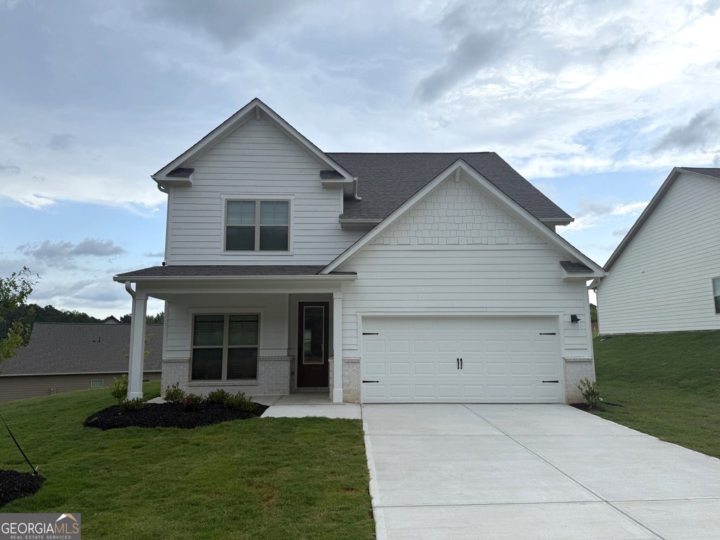 Welcome to the Tybee plan, a beautifully designed two-story home that offers the perfect blend of style, space, and flexibility. Step into the inviting foyer and discover a spacious family room that flows seamlessly into the dedicated dining area - ideal for entertaining or everyday comfort. A versatile office room provides the perfect space for remote work, hobbies, or study. The heart of the home is the chef-inspired kitchen, featuring luxurious quartz countertops, ample cabinetry, and modern appliances that make cooking and hosting a breeze. This home offers the rare convenience of dual primary suites - one on the main floor and another upstairs - making it ideal for multi-generational living or accommodating guests in comfort. The downstairs suite is a serene retreat with a spa-like bathroom, including a glass-enclosed shower, dual sink vanity, and spacious walk-in closet. Upstairs, a second primary suite and thoughtfully arranged secondary bedrooms provide privacy and practicality for the whole household.