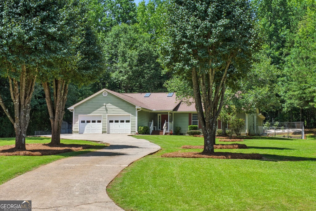 Extensively renovated onelevel ranch with fabulous style and function! Two luxurious primary suites-each with ensuite bath and walkin closet-plus cathedral open-concept living. The stunning walnut hardwood floors flow through the home, leading to an exceptional kitchen featuring quartz-topped center island, premium cabinetry, and stainless appliances. Exterior freshened with new Hardie-Plank siding. Enjoy a large private back deck, perfect for entertaining or quiet relaxation. Ample outdoor storage, generous parking, and all situated on a private, level 1.75-acre lot. Enjoy easy, single-level living in a serene and spacious setting.