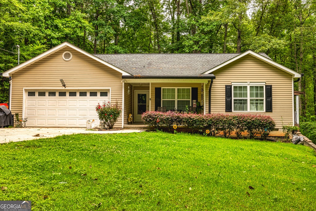 Tucked away on a private wooded lot, this well-maintained three-bedroom, two-bath home offers the perfect blend of comfort, convenience, and outdoor living. Step inside to find an open-concept floor plan with stylish LVP flooring throughout, a spacious living area, and a kitchen featuring solid surface countertops and stainless steel appliances-perfect for both everyday living and entertaining. The oversized wraparound back porch invites you to relax in your own peaceful retreat, complete with a covered section and a pool table that stays with the home-ideal for hosting friends or enjoying quiet evenings. Situated on a generous lot with plenty of privacy, this property also includes the option to purchase an additional 2-acre parcel, making it a rare find for those looking for even more space or future possibilities. Conveniently located close to shopping and just minutes from I-85, you'll enjoy easy access while still feeling tucked away from it all. A perfect combination of nature, comfort, and accessibility-don't miss this one!