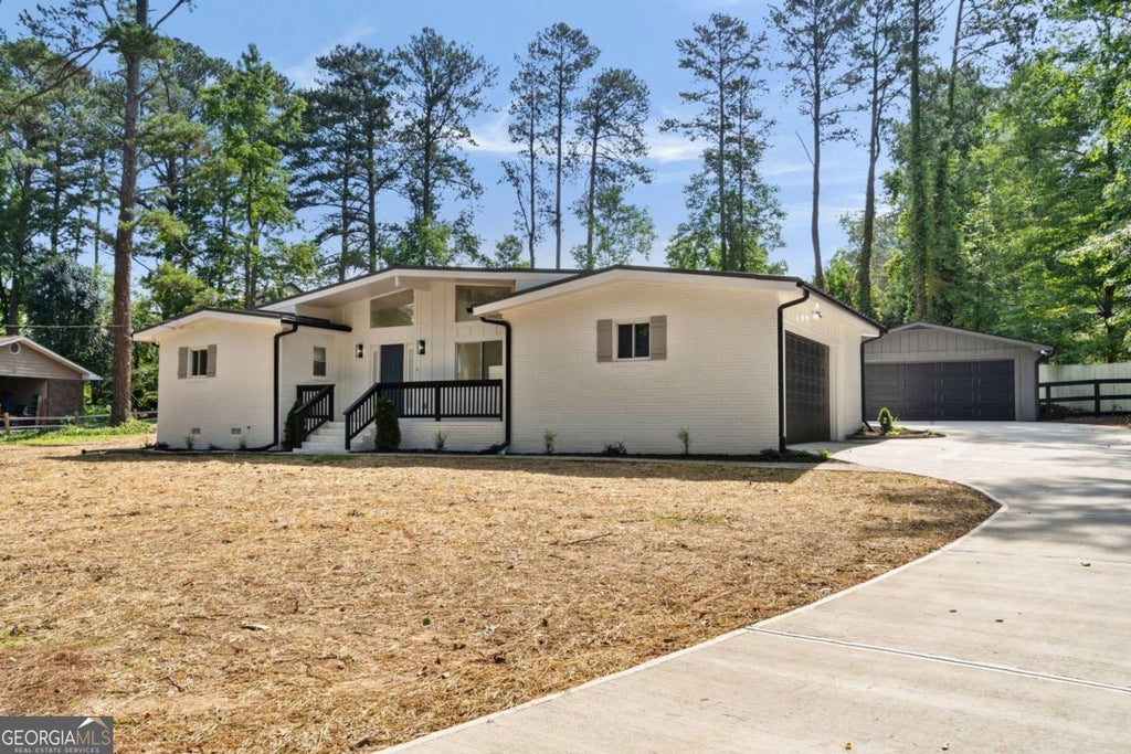 Don't miss a rare opportunity to own such a unique home and property located just minutes from the heart of East Cobb with interstate access. This fully renovated home features contemporary design with modern finishes. Located at the end of the street, this home will afford you all the privacy you have been looking for. You will be minutes from everything, but you will feel like you are miles away. As you approach, you will notice that you are surrounded by large lots with mature trees. As you pull in the drive, you will be excited to see not only the side entry garage, but an additional separate two-car garage that can be the wood or auto shop you always wanted. Step inside and find natural toned floors, black and gold metal features, and tall ceilings. The newly renovated kitchen boasts white modern cabinetry, quarts countertops, a subway tile splash, and stainless appliances. In addition to the three bedrooms, you will find two newly renovated bathrooms. Custom vanities, quartz tops, and custom tile surrounds really set this home part from the competition. Step out onto the brand new patio in the back to find a large, cleared lot that has been fenced in with a split rail fence, finished off to keep the pets in. Perfectly located right off Roswell Rd, this home gives you East Cobb status and instant access to the interstate for that quick commute to the city.