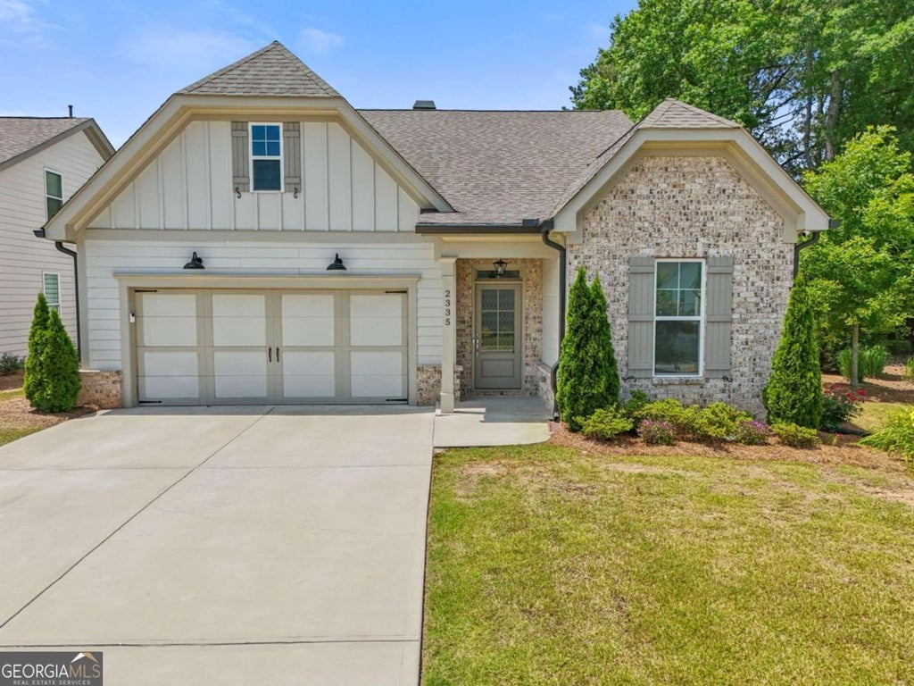 Looking for new construction interest rates on a resale we have it through our preferred lender, offering a 3.99% fixed interest rate with 100% financing on a 30 year loan with no fees, no points, no PMI and no down payment. This home shows like New Construction and is located in a highly desirable, gated, 55+ Marietta Community. From the curb you experience inviting Southern Charm with luxurious brick and decor that says "I'm Home". Step inside to find gleaming hardwood floors throughout the main level, adorned with coiffered ceilings in the family room that perfectly accents the home, creating ambiance for relaxing in front of a cozy fireplace framed with a built in bookcase. The chef's kitchen is a standout, with an over sized center island featuring quartz counter tops with abundance of cabinet space. The spacious primary suite boasts vaulted ceilings, dual vanities, custom tile, walk in closets with California Closet shelving and a mega shower, a definite show stopper, is the star of the room. The upstairs features a huge additional bedroom/bonus family room or loft, it is an amazing space for entertaining or it can be used as a secondary Master Bedroom. Upstairs features brand-new Stain Master carpet with Elite double padding for digging your toes in comfort. A heated and cooled attic workshop/storage room is an added bonus for hobbies or organizing. Enjoy year-round outdoor living in the over sized, fully screened patio with custom tile, ceiling fan, and a doggy door leading to a private, fenced backyard with shade and room to relax. The community features a clubhouse, dog park, lawn maintenance with irrigation, security gate and so much more. With its mix of elegance and everyday comfort, 2335 Plummer Pl. offers everything you need in a forever home. Don't wait, homes of this quality in Marietta's 55+ communities don't last long. Schedule your private tour today!