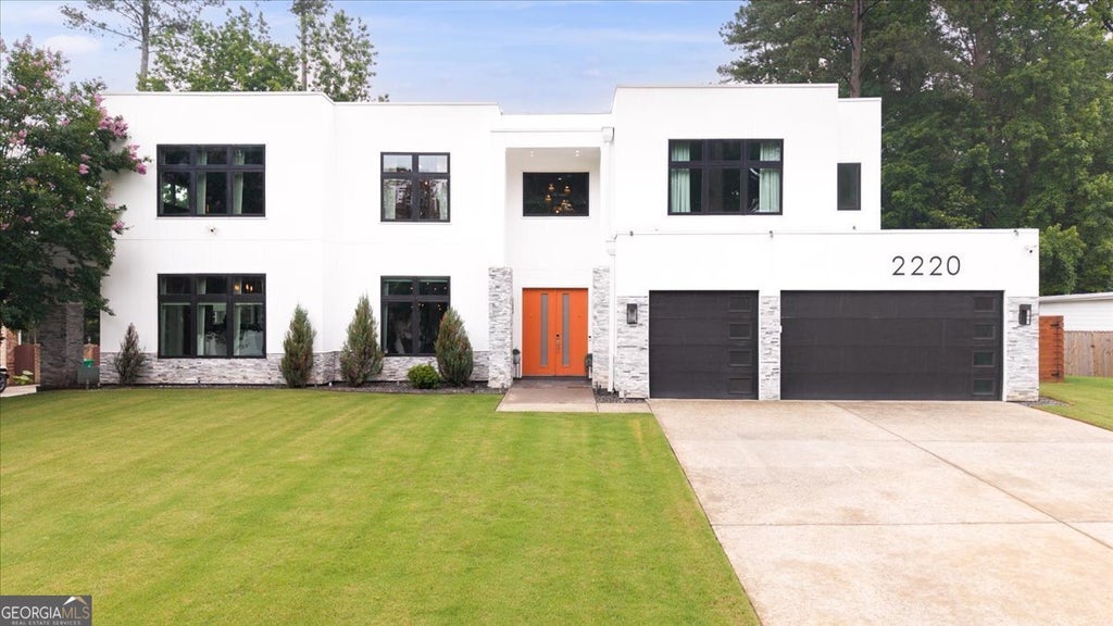 Step into the epitome of modern luxury in this stunning contemporary masterpiece nestled in one of Atlanta's most sought-after neighborhoods. If your heart desires a close-knit community with exceptional schools, your search ends here! Built in 2019 and meticulously updated in 2022, this home is a true testament to opulence. As you step inside this 5-bedroom, 5.5-bathroom residence, you're greeted by a breathtaking two-story foyer and sprawling exotic bamboo hardwood floors. Moody painted walls set the stage for dramatic living spaces adorned with marble accents and designer wallpaper, creating a visual symphony of textures and hues. Unwind by the double-sided gas fireplace, seamlessly bridging the gap between the living room and formal cocktail room, or indulge your culinary senses in the gourmet kitchen, boasting Quartz countertops, a 10-foot waterfall island with black marble backsplash, sleek European-style cabinets, and top-of-the-line Wifi connected smart appliances. Ascend the custom glass stairwell with a show-stopping chandelier centerpiece that leads you to a sanctuary of comfort in the Owner's suite. Here, you'll find a spa-inspired bathroom including a soaking tub, porcelain tile flooring, and two walk-in closets - one of them discreetly hidden behind a Murphy door. Discover unparalleled amenities throughout, including a climate controlled wine cellar capable of housing up to 1000 bottles, perfect for the connoisseur eager to showcase their vintage collection. Additional features include two bedrooms on the main level, a private fenced-in backyard, two covered patios, automated kitchen and living room window treatments, and a 3-car garage pre-wired for 2 electric cars. Every detail in this home has been thoughtfully curated to elevate your lifestyle to new heights. Conveniently located off I-85, less than 10 minutes from the new CHOA campus. Don't miss the opportunity to make this Atlanta gem your own!
