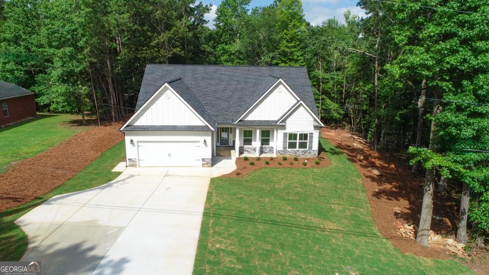 Stepless ranch home that's move in ready, just bring your beach chairs and enjoy the summer on the lake! This home features custom cabinets, stone counter tops and black stainless appliances. The living room boast vaulted ceilings and a custom fireplace. Master has a sitting/office area and a great master bath with a tiled walk-in shower, double vanity and walk in closet. This brand-new construction also offers two other spacious bedrooms and one bath. Very close to the fishing lake and the walking trails.