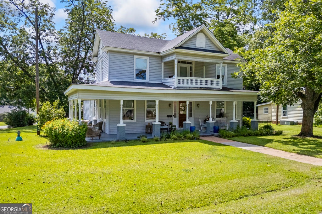 Charming Southern Elegance in Historic Washington, Georgia. Are you ready to leave behind the hustle and bustle of big city life? Then look no further and welcome to 514 South Jefferson Street, located just a few blocks from the picturesque downtown square of historic Washington, Georgia. This beautifully appointed home blends timeless style with classic Southern charm, offering a peaceful retreat in a vibrant small-town setting. From the moment you arrive, you'll be captivated by the lush landscaping and eye-catching curb appeal. The expansive wraparound front porch invites you to relax, entertain, and enjoy the outdoors in true Southern fashion. Inside, the home welcomes you with a grand foyer featuring tall ceilings and gleaming hardwood floors. On the left you have a formal living room, a dedicated, elegantly designed space intended for relaxation and reception. To the right there is a there's a generously sized room that includes both a window and a closet, giving it the flexibility to serve as a fourth bedroom. However, it's presently arranged and utilized as a home office. Continue down the hall to discover a formal dining room ideal for hosting gatherings, while the cozy den opens into a well-appointed kitchen. The kitchen boasts solid surface countertops, abundant cabinetry, a stylish backsplash, and warm wood paneling. The primary suite is conveniently located on the main level in the rear corner of the home, offering privacy and comfort. Upstairs, you'll find a landing area, a second full bathroom with brand-new luxury vinyl plank flooring, and access to a charming covered porch overlooking the front yard. The second and third bedrooms are located on either side of the upstairs landing, each featuring ample closet space and ceiling fans. A unique and highly practical feature of this home is the walk-in attic storage-accessible through each upstairs closet. These large, spray-foamed, and floored attic spaces offer storage options rarely found in homes of this era. Additional highlights include a dedicated laundry room on the main level, a peaceful backyard with a patio perfect for relaxing or entertaining, and an outbuilding for storing lawn equipment or tools. 514 South Jefferson Street offers the best of small-town living with comfort, character, and convenience. Schedule your showing today and come experience the charm for yourself!