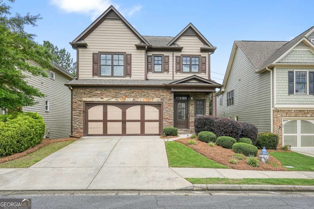 A rare find in Cornerstone Park-this spacious three-level home offers over 3,000 sq. ft., with terrace level apartment suite, and an incredible backyard oasis! Meticulously maintained with thoughtful upgrades inside and out! You won't find a yard like this, fenced for a private setting with $15K in professional landscaping and ambient lighting. Step inside to gleaming hardwood floors, an open kitchen with oversized granite seated island, large pantry for the daily chef, stainless steel appliances, and ample granite counter space. The open floor plan flows into the dining area and family room with a stone fireplace and custom built-ins, while outdoor living is easy with a screened porch, open grilling deck, and shaded patio below. Upstairs, the oversized owner's suite features a spa-like bath with separate tub and shower, plus TWO primary walk-in closets. Two guest bedrooms, a hall guest full bath, and hall laundry room with custom shelving complete this level. The terrace level is designed for flexibility and everyday convenience. It can serve as an additional 4th bedroom suite, perfect for in-laws, teens, or long-term guests, complete with a full bathroom featuring a tub/shower and granite vanity with storage. A practical mini-kitchen includes a beverage cooler, custom cabinetry, a built-in microwave, sink, and granite counters, making it easy for independent living. The large daylight room functions well as a studio apartment, with double windows that bring in natural light and a private entrance that opens to a covered patio and the fenced backyard. The rear deck with custom stairs connects the upper porch to the private yard below. Recent updates include a new tankless water heater (2024), new A/C systems (2021 & 2024), and updated garage door with camera system (2024). Lawn care and irrigation are included in the HOA for easy maintenance. Located in a sought-after community with top-rated schools, just minutes to Hwy 92, Downtown Roswell, Avalon, and Alpharetta, this home truly has it all!