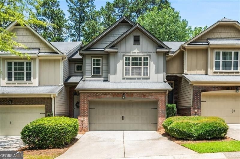 Welcome home to this ready to move into townhome in Marietta in a quiet gated community. This townhome has been extremely well cared for and features all new interior paint. You will love the open floor plan of the main level with LVP flooring in the family room which has a brick fireplace and built-in bookcases on either side. The dining area has nice views of the private back patio. The adjoining kitchen features stainless appliances and granite countertops with ample cabinet storage. The two car front entry garage has plenty of space plus a storage closet. The second level features the primary suite with nice trey ceiling, adjoining bath and generously sized walk-in closet. The two additional bedrooms and secondary bath are perfect to use as bedrooms or as a home offices. The private patio overlooks the woods and has an exterior storage closet. The HOA fees are low and include water, exterior dwelling, grounds and road maintenance, trash, pool, termite, fire insurance, common area insurance and maintenance and HOA management services.