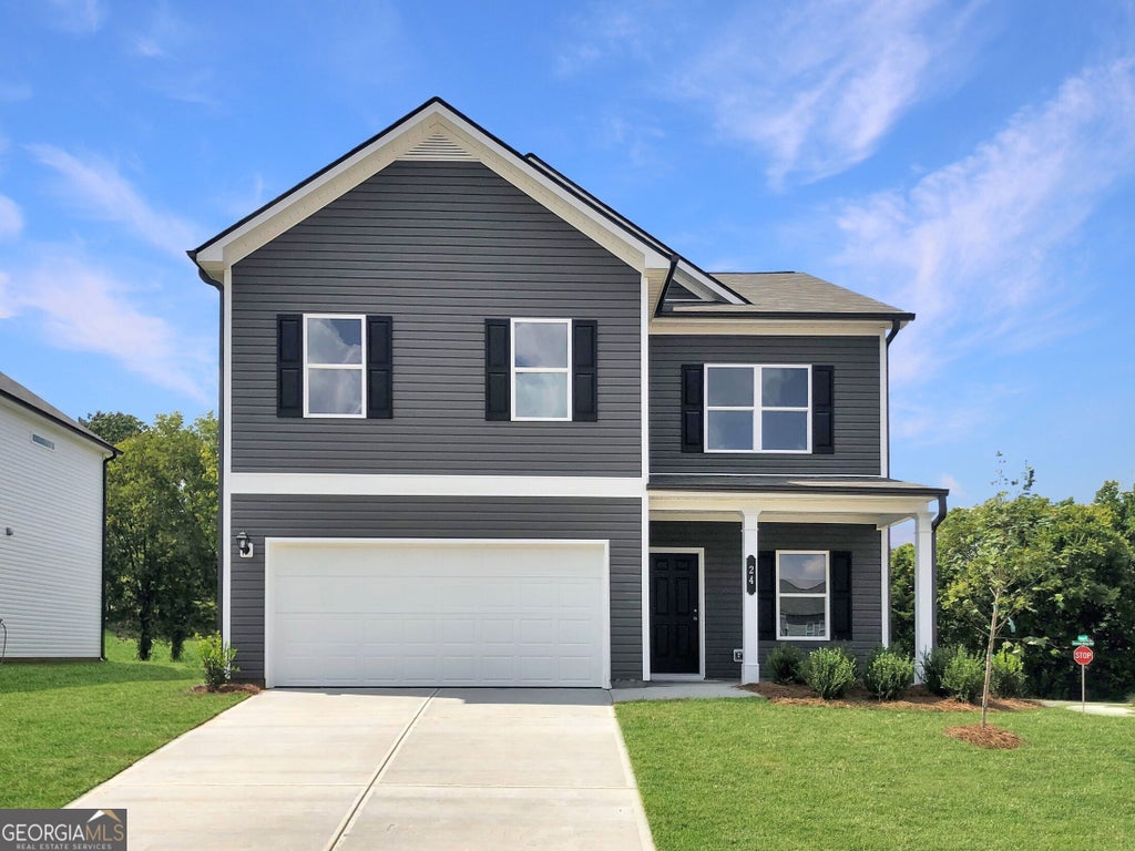 Move in Ready October! The Harrington plan, located in the Arrington community, built by Smith Douglas Homes! This two-story plan features a welcoming entry with an adjacent study. This inviting open concept home has a family room with a linear fireplace that overlooks the kitchen complete with a center island for cafe dining and a breakfast area! Enjoy direct access from the kitchen to the covered patio, excellent for dining alfresco! Additional windows in the family room and at the top of the stairs have been added, creating a light-filled home. The second story is host to a huge Owner's suite with a separate tiled shower, Garden tub and double sink vanity. Three secondary bedrooms and a shared bath complete this level. Both stories have 9ft ceiling heights. Photos representative of plan and not of the actual home being built. Seller incentives with use of preferred lender.