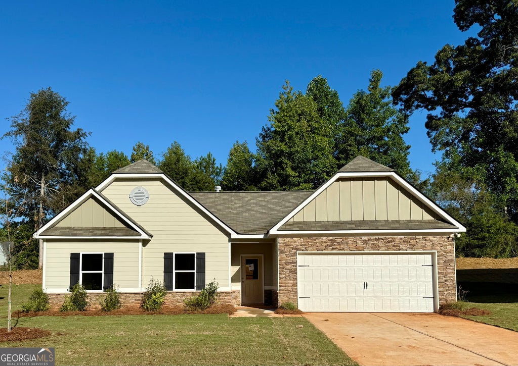 Home is move in ready and USDA Eligible! Plan 4940 / Features a Craftsman style exterior with a combination front elevation of stone and Hardiplank with board & batten. This plan includes 3 bedrooms and 2 baths with a 2 car garage, smooth ceilings throughout, and 9' first-floor ceilings. Convenient single story living features a spacious family room with fireplace, dining area, large kitchen with granite countertops, kitchen island, and stainless appliances, as well as a spacious primary suite with dual vanity, garden tub, separate shower, and large walk-in closet. Two additional large bedrooms are also located on the main floor. Builder will contribute $10,000 toward closing costs. Blinds, Screens, Glass Shower Door in Owner's Suite and Garage Door Opener added at no charge to Buyer! Interior home pictured is an example of home to be built.