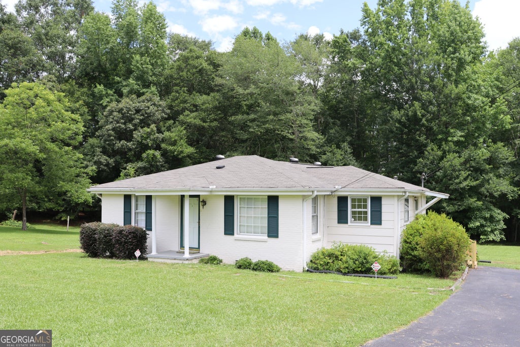 Mid-Century Modern home on two + acres! Not in a subdivision and not part of an HOA. Perfect starter home or retirement cottage with plenty of room to garden. Easy access to I-20 in a laid-back part of Villa Rica. Open concept kitchen with breakfast bar and walls of custom cabinets. Cozy den with well-placed picture window overlooks your own, private oasis. This home features a formal living room, separate dining room, den off the expanded kitchen, a utility room with a newly built staircase to the back yard, two nicely-sized bedrooms, a full bath, and a flex room with stoop to the side yard parking area. With so much property, adding on a master suite would be a breeze.