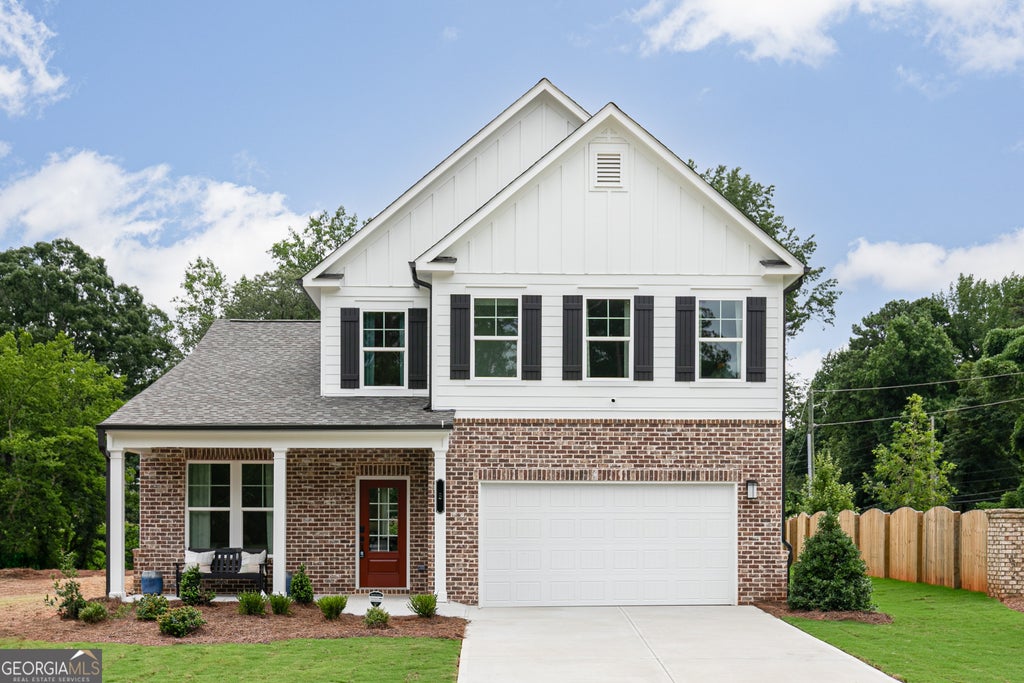 Welcome to Stanley Martin Homes, you are greeted with the Hollins plan, you can mix and mingle with friends and family in your open-concept first floor, which includes a kitchen overlooking the family room and dining area. A bedroom at the front of the home can be used for guests to have their own private space. The covered front porch or rear patio provide the perfect spot to relax and enjoy your new home. Upstairs, the Primary suite boasts ample space, including a large walk-in closet off the on-suite bathroom with double vanities, walk-in shower and separate soaking tub. Additional bedrooms provide the perfect place for family or friends to rest their heads at night. Plus, take the chore out of doing the laundry with a conveniently located laundry room on the upper level! Some of the SMart Selected design options in this home include a gourmet kitchen & center island, large owner's suite with walk-in closet and on-suite bath, patio, main level bedroom and full bath. Lot 74.River Oaks is perfectly positioned to offer the best of Locust Grove living. With easy access to I-75, you will be minutes from: Tanger Outlets, Historic Downtown Locust Grove, Shopping and dining destinations. The area is also surrounded by popular attractions, including Noah's Ark Animal Sanctuary, High Falls State Park, and the Atlanta Motor Speedway. Photos shown are of a similar home.