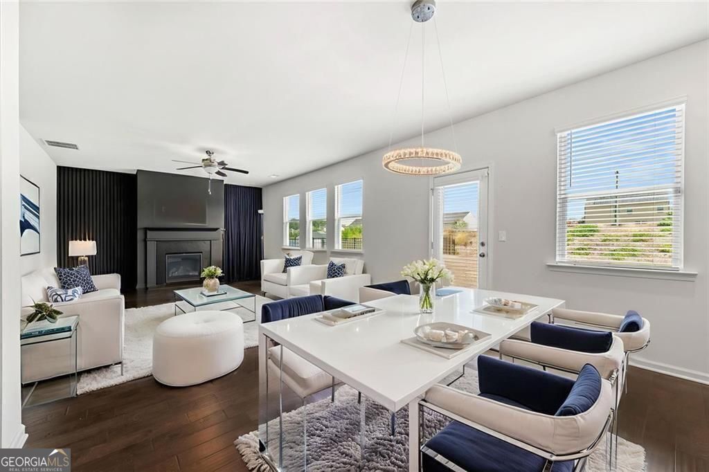 Welcome to this stunning home that blends elegance, functionality, and comfort in every corner. From the moment you arrive, you're greeted by manicured landscaping and a charming facade that sets the tone for the beauty within. Inside, soaring ceilings, rich hardwood floors, and natural light create an inviting and sophisticated atmosphere. The open-concept layout connects the living spaces seamlessly-perfect for both cozy nights in and lively gatherings. The gourmet kitchen is a chef's dream with high-end appliances, ample counter space, and a bright dining area that encourages connection and conversation. The spacious living room, complete with a cozy fireplace, opens to a serene backyard-ideal for entertaining or relaxing under the trees. Upstairs, the luxurious master suite offers a spa-like retreat with a soaking tub, separate shower, and dual vanities. Additional bedrooms provide comfort and versatility for family, guests, or a home office. With thoughtful touches throughout-like a dedicated laundry room and generous storage-this home is designed for everyday ease and long-term enjoyment. Don't miss your chance to experience this exceptional property. Schedule your private tour today and discover the lifestyle waiting for you.