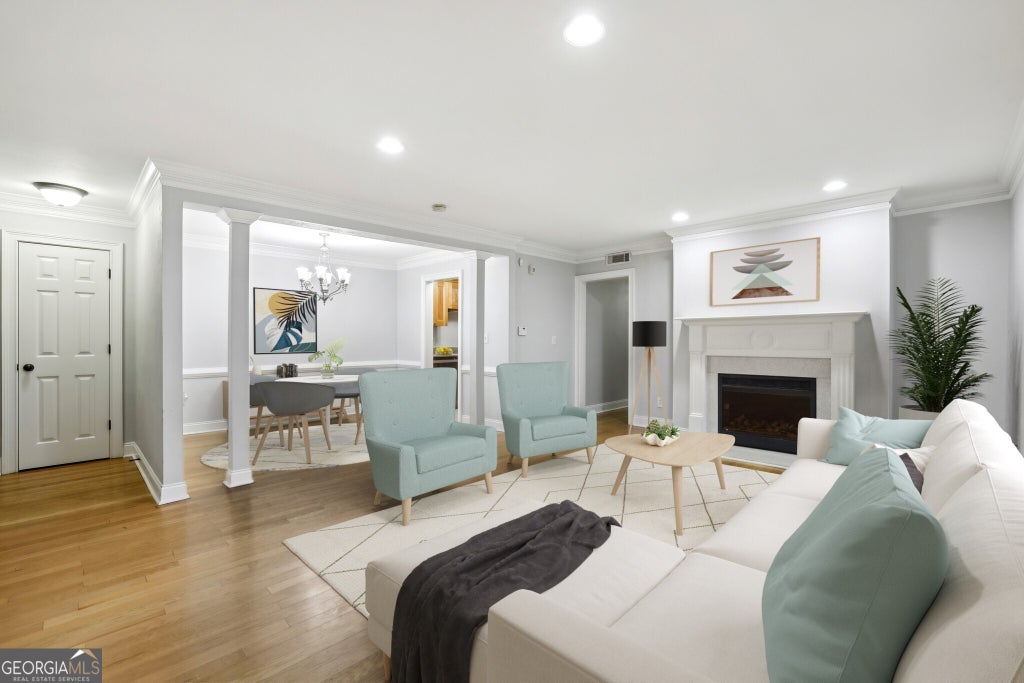 Experience refined living in this stunning Condo nestled within the highly sought-after Gated Community of Chateau at Dunwoody perfectly positioned just outside the perimeter for easy access to all that Atlanta has to offer! Enjoy the convenience of being near Parks, Coffee Shops, Grocery Stores, Shops, and a variety of incredible Local Restaurants in Chamblee, Brookhaven, Dunwoody, and along Buford Highway a dream location for discerning foodies. Step inside to find a beautifully designed Open Concept layout featuring a Fireside Living Room with Hardwood Floors, Crown Molding, and a Classic White Mantel. French Doors lead to your Outdoor Space, creating a seamless flow between indoor and outdoor living. The Formal Dining Room is ideal for hosting dinners and creating lasting memories. The well-appointed Kitchen boasts Stained Shaker Cabinets, Granite Countertops, and ample Counter Space. The Laundry Area is conveniently located nearby. Retreat to the Primary Suite, a massive bedroom filled with Natural Light and complemented by an Ensuite Bathroom featuring a Step-In Shower Tub Combo. The Vanity Area is separate, offering additional storage, and connects to a Large Walk-In Closet. Two additional Spacious Bedrooms are perfect for guests or a Home Office and share a well-designed Full Bathroom. As a resident of Chateau at Dunwoody, you'll enjoy fantastic Community Amenities, including a Pool, Clubhouse, and Green Space. With easy access to I-285, Downtown Atlanta, Buckhead, Brookhaven, GA 400, and Emory University commuting is effortless. A short drive to Restaurants, Shopping, and more makes this condo the perfect blend of Convenience and Luxury. Don't miss out on this incredible opportunity!