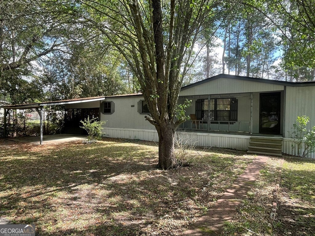 Nestled in Worth County, Georgia, this charming three-bedroom, two-bath manufactured home offers the perfect blend of comfort and convenience. Featuring a circular drive with covered parking, the exterior boasts a screened porch and an ample storage building. Inside, you'll find an inviting open concept with a spacious kitchen, complete with an island, pantry, and appliances that stay. The living room is a cozy retreat with a fireplace and views of the backyard. The split design provides privacy for the large master bedroom, which includes two closets and an en-suite bathroom with a linen closet. The additional bedrooms are generously sized and share a convenient hall bathroom. A laundry room off the kitchen leads directly to the screened porch, making everyday chores a breeze. Don't miss out on this delightful home!