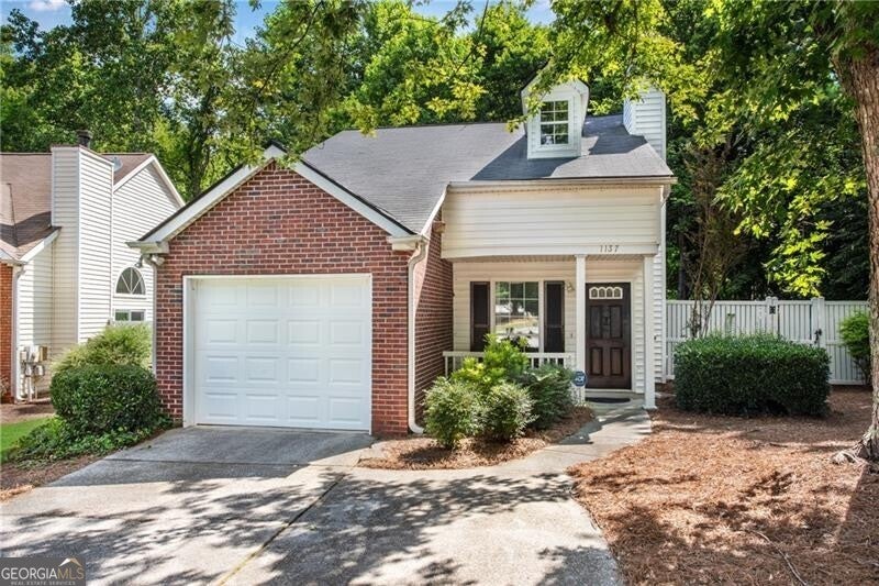 Easy to maintain brick & vinyl exterior home situated on a private just under 1/2 acre wooded, corner lot! COMPLETELY RENOVATED INTERIOR! Covered front porch opens to the soaring two-story great room w/wood burning fireplace. Wide plank hand scraped style laminate flooring on ENTIRE main level! New kitchen features 42" white shaker cabinets, built-in microwave, stylish black granite counters and SS gas range. Dining room w/French doors to patio. Primary suite features a new tile bath w/subway tile. ALL bathrooms feature granite counters and black finish plumbing fixtures. Ceiling fans in all bedrooms. Main level secondary bedroom has a full tile bath featuring a designer tile shower w/black window grid glass wall and porcelain vessel sink! Upstairs boasts a HUGE loft perfect for recreation room, home office or even a guest bedroom space. Walk in attic w/storage space. Private partially fence yard. Swim/Tennis Community w/easy access I-85!