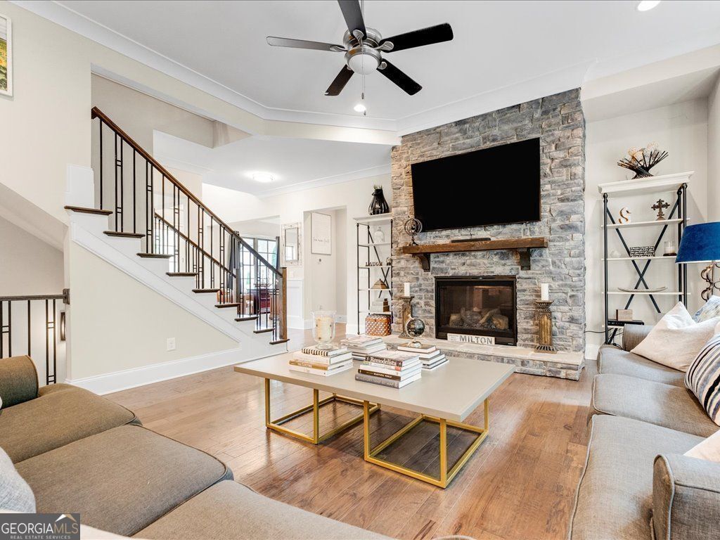 Priced below appraised value, this 7-bedroom, 5-bath estate offers nearly 6,000 square feet of beautifully crafted living on more than an acre of wooded privacy, tucked away on a private Milton cul-de-sac. The home features a chef's kitchen with custom cabinetry, premium appliances, and an oversized island that flows into light-filled gathering spaces, including two fireplaces, a keeping room, and a spacious family room. A main-level guest suite provides flexibility for visitors or multi-generational living, while the luxurious primary retreat upstairs includes a spa-style bath with soaking tub, oversized shower, and double vanities. The fully finished terrace level expands the home with a media room, secondary kitchen, wine storage, and two additional bedrooms. Outdoors, explore the potential of your own private oasis with newly released renderings and 3D video imaging of a pool option designed for the property. Ideally located near Crabapple, Downtown Alpharetta, Avalon, and top-rated Milton schools, this rare opportunity blends privacy, flexibility, and luxury-now offered at an exceptional value.