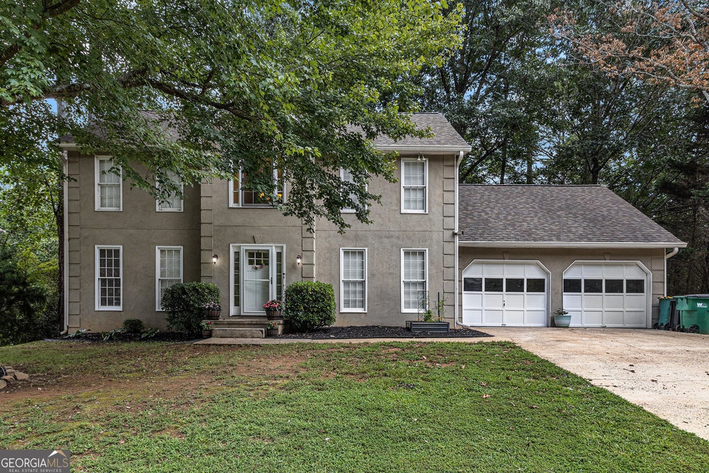 Welcome to this beautifully maintained two-story traditional home located in the highly sought-after Woodstock High School District in Cherokee County. Perfectly situated with convenient access to I-575, I-75, Downtown Woodstock, Town Center shopping, and KSU, this home offers both comfort and convenience. Nestled on a private, wooded lot, the property features a durable hardcoat stucco exterior with HardiPlank siding and a brand-new back deck overlooking the serene backyard. Inside, you'll find updated paint and flooring throughout, creating a fresh, modern aesthetic. The main level offers multiple living spaces, including a formal dining room and a versatile flex room-ideal for a home office, playroom, or additional sitting area. The spacious eat-in kitchen features white cabinetry, stone countertops, and easy access to the main-level laundry room. The cozy family room includes a fireplace for warm, inviting gatherings. Upstairs, you'll find three generously sized bedrooms and two full baths. The oversized owner's suite is a private retreat with a whirlpool soaking tub, separate shower, dual walk-in closets, and abundant natural light. The full, unfinished basement with high ceilings offers endless potential for storage, recreation, or future finished space to suit your needs. Additional highlights include a two-car garage and an extended driveway for ample guest parking. Located in a neighborhood with an optional HOA for pool access, this property combines flexibility and lifestyle. Priced to sell-schedule your private showing today!