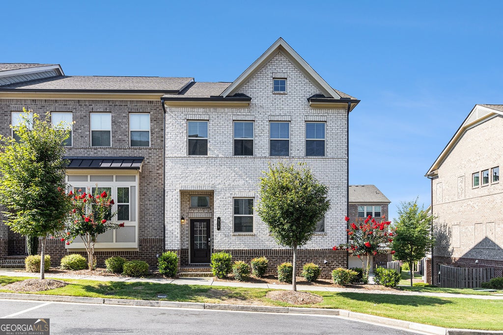 Discover this gorgeous end-unit townhome by Lennar, featuring an open-concept design and an oversized covered deck-perfect for relaxing or entertaining. The magnificent kitchen is a chef's dream, showcasing granite countertops, a stylish tiled backsplash, 42" white cabinets, an oversized island, and gourmet stainless steel appliances including a 5-burner gas cooktop with vent hood, convection microwave, and wall oven. The spacious great room offers a cozy fireplace and flexible space ideal for a home office, play area, or additional seating. Beautifully durable 7" engineered vinyl plank flooring graces the main level, complemented by oak stair treads for a sophisticated touch. Upstairs, the expansive owner's suite features an elegant bath with an oversized shower, while two generously sized secondary bedrooms share a full bath. A large laundry room adds convenience. The finished basement offers a versatile bonus room, half bath, and extra storage, while the rear-entry two-car garage and oversized parking pad provide plenty of space for vehicles and guests. Located minutes from The Outlet Shoppes of Atlanta and all the dining, shopping, and entertainment of downtown Woodstock.